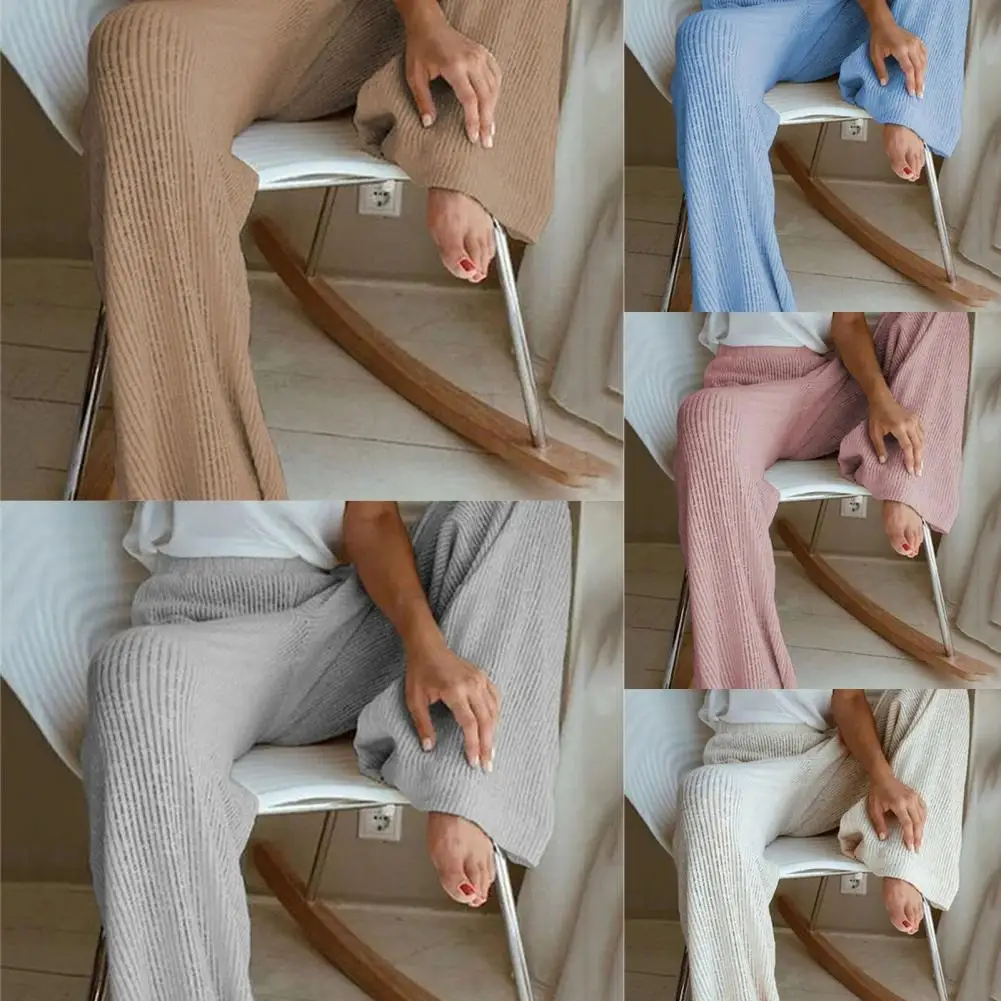 Осенние модные прямые широкие трикотажные брюки, удобные повседневные брюки с эластичным поясом для дома