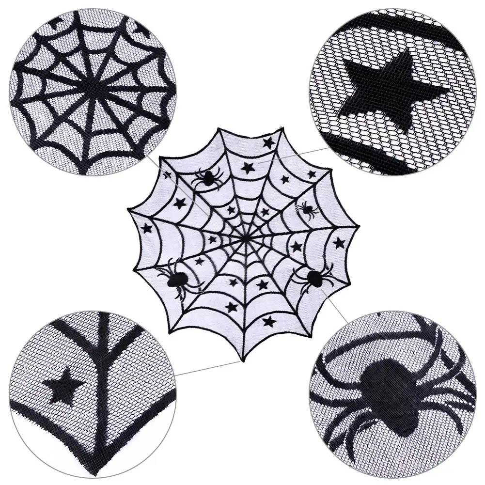 Страшное украшение на Хэллоуин: наш черный кружевной стол на Хэллоуин Топпер 40 дюймов, черный паук и пентаграмма напечатаны на кружевной скатерти, добавив атмосферу страшного кровопролития на Хэллоуин