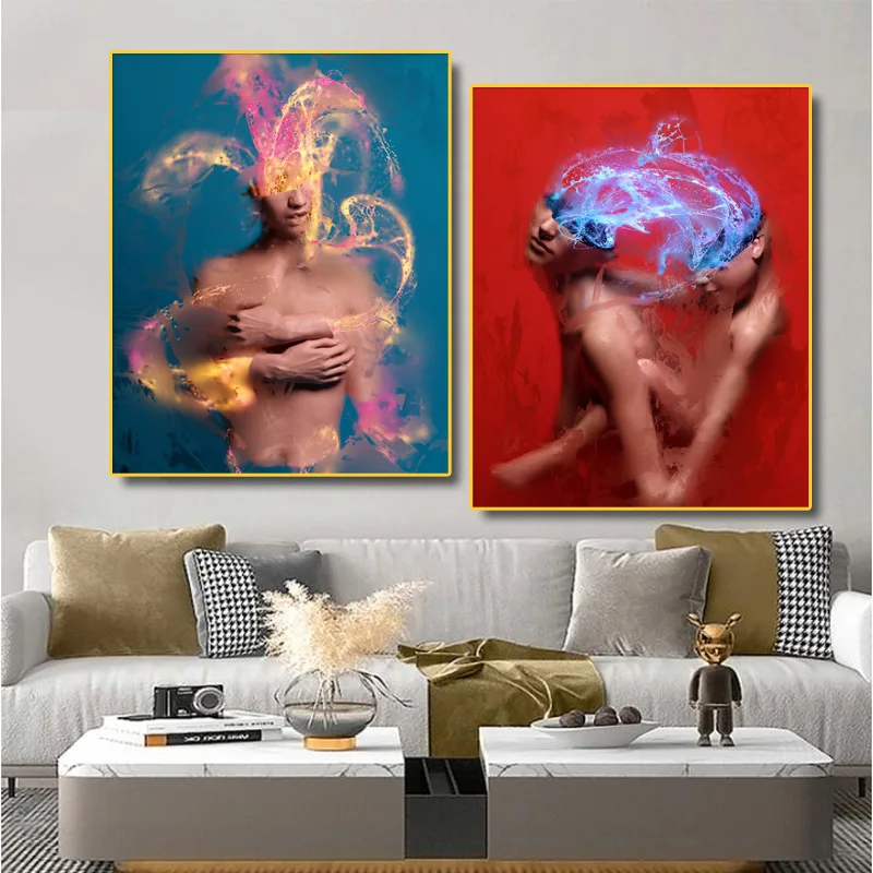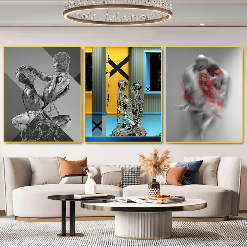 Современная Абстрактная Статуя Обнаженной пары, скульптура, настенное искусство, живопись на холсте, принты и картины, постер для гостиной, домашний декор