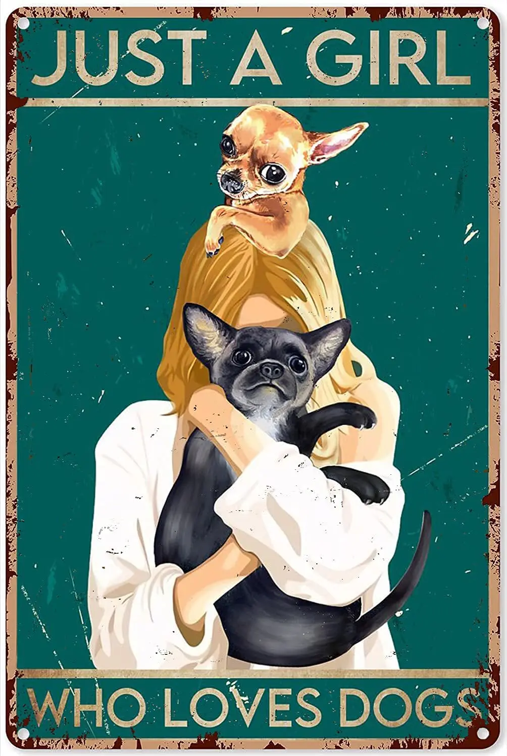 Винтажный жестяной настенный Декор Девушка и собака и она жила винт...