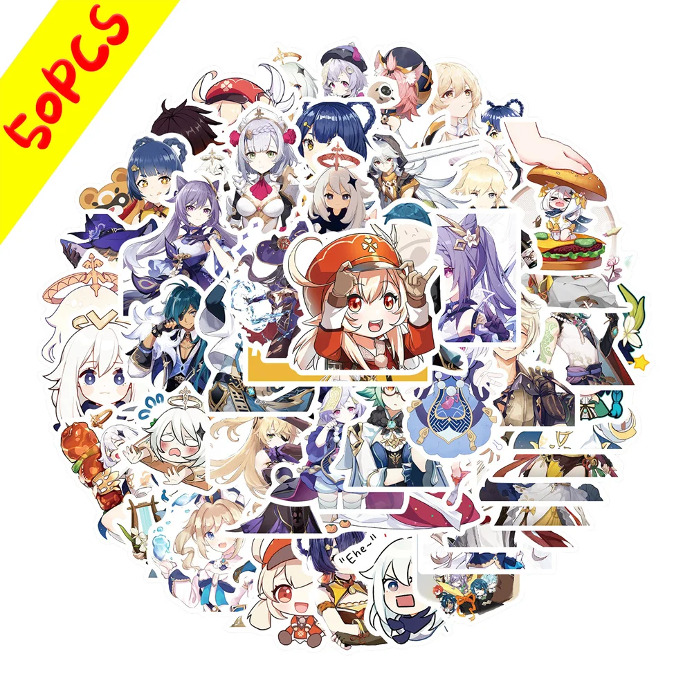 Наклейки с героями аниме Genshin, водонепроницаемые, для детей, для ноутбука, скейтборда, мобильный телефон, 103050 шт.