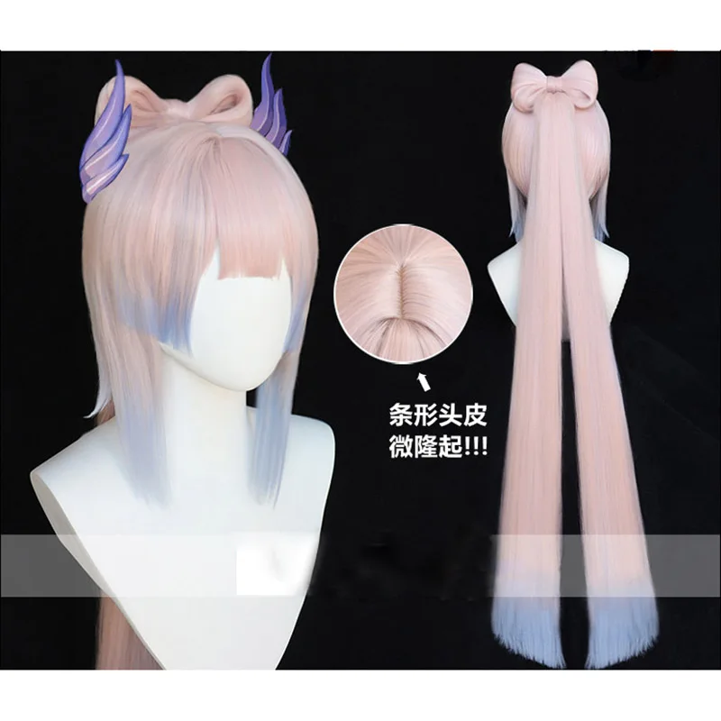 Парик для косплея YanFei Genshin Impact, длинные, розовые, белые, г...