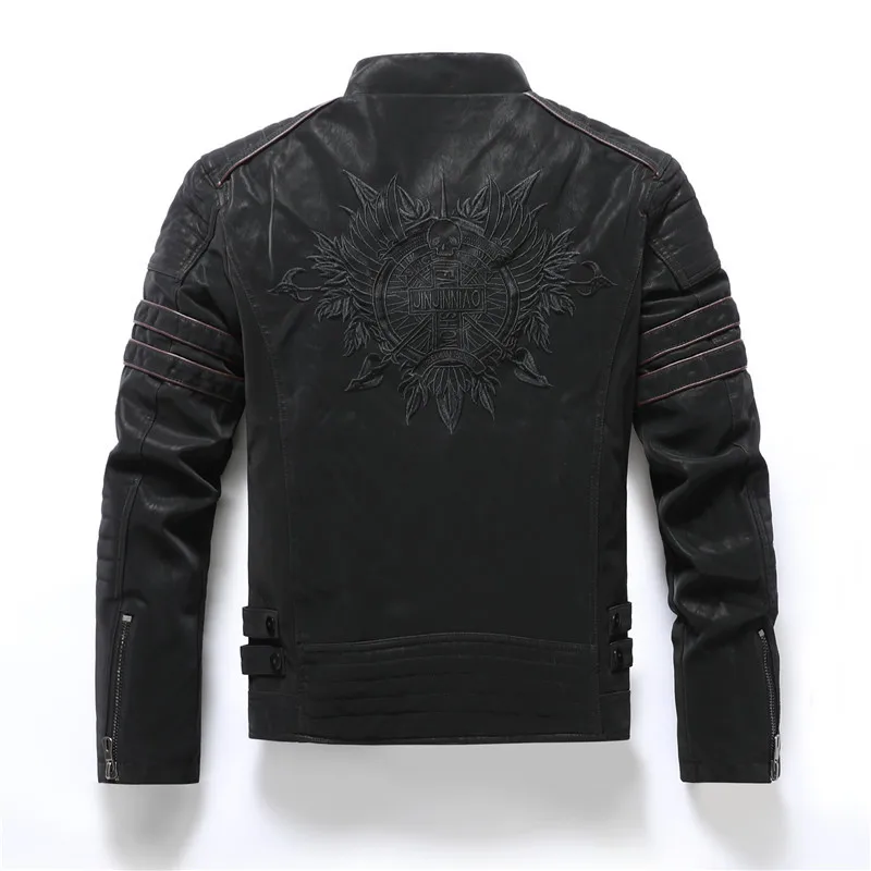 Мужская мотоциклетная куртка из ПУ кожи, с воротником-стойкой и выш...