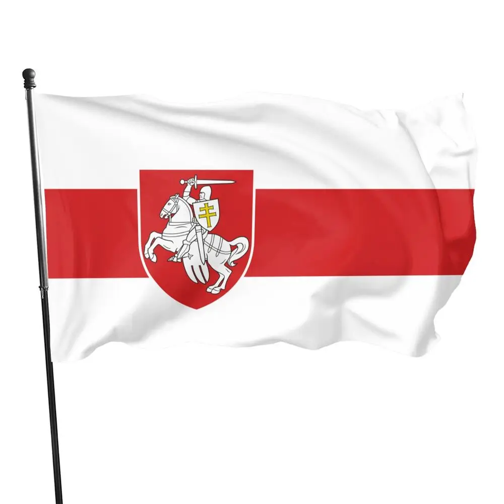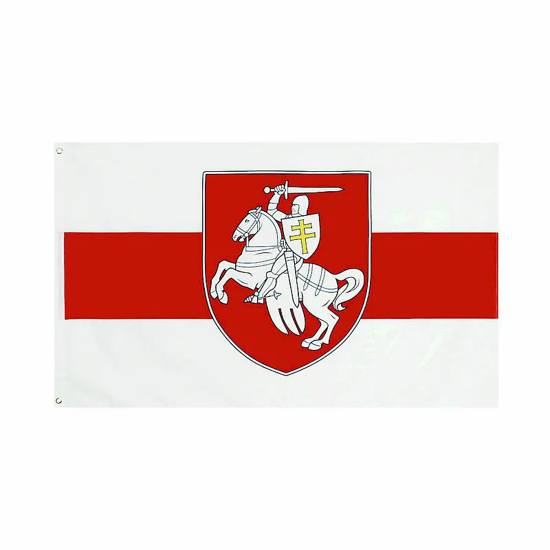 Белый рыцарь из Беларуси, флаг пгонии 90x150 см, полиэфир, белорусский знак с гербом оружия, флаг для украшения