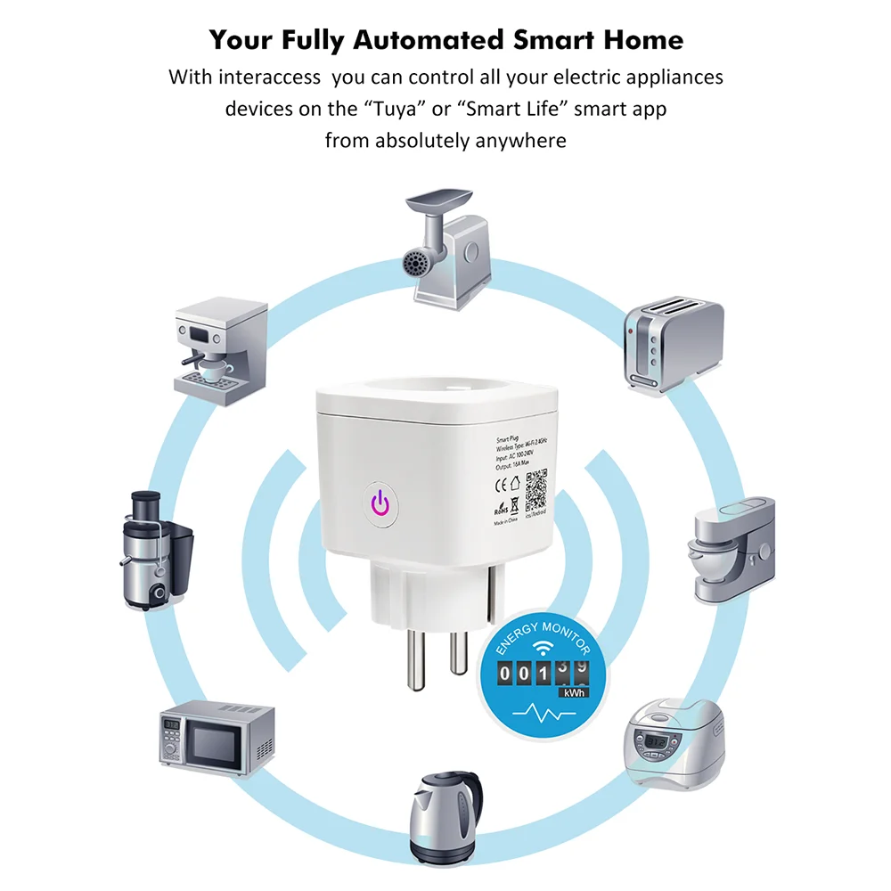 【От App Remote Control】-При использовании нашей мини-розетки smart plug вы можете управлять бытовой техникой удаленно и умно с помощью телефона или планшета с помощью приложения Smart Life от Tuya Inc. Управляйте устройствами с помощью телефона или голосового управления. Снижает затраты на вашу жизнь