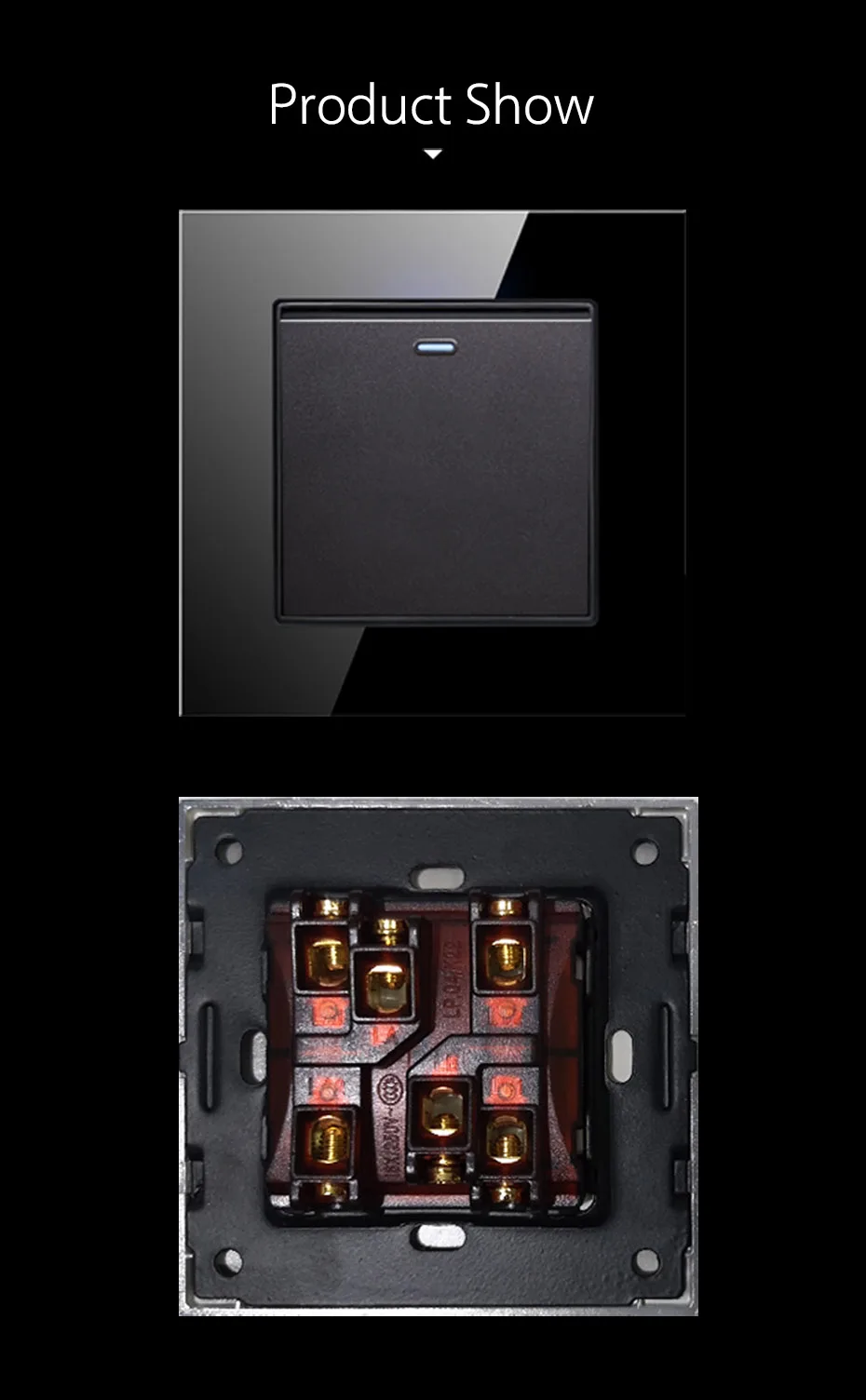 Wallpad 1 Gang 3 Way промежуточный переключатель, черная кристаллическая панель из закаленного стекла, 86*86 мм