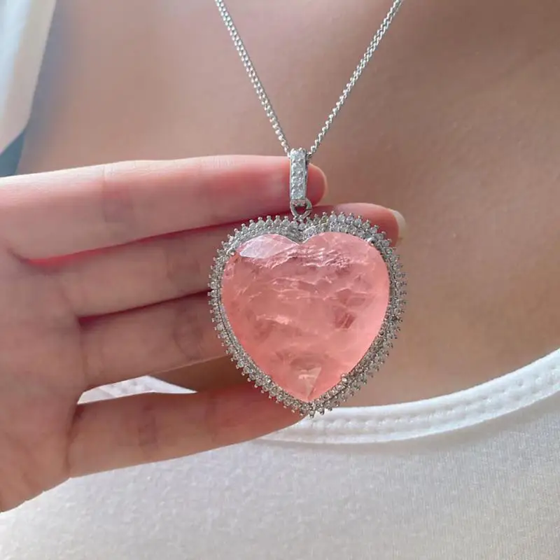 Ожерелье женское с кулоном из муассанита, розового хрустального Тур...