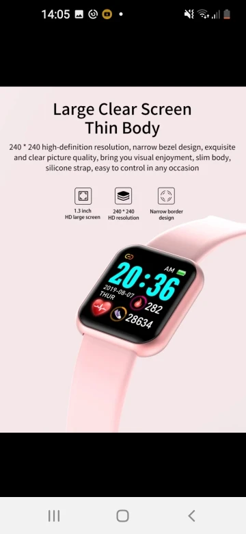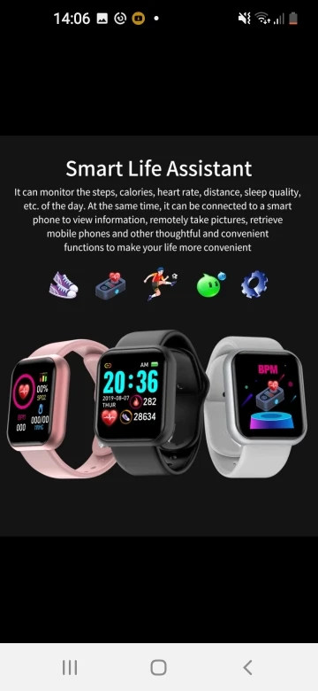 * ЦП: Hs6620D* Экран 1,44 дюйма 240*240 IPS* Основной чип управления: HS66200D* Версия Bluetooth: BT 4,0 или выше* Режим работы: одна сенсорная кнопка* Водонепроницаемость: IP67 водонепроницаемость и Пыленепроницаемость, не поддерживают плавание и принимают душ. Емкость аккумулятора: 150 мАч* Напоминание о звонках или сообщениях, отображение идентификатора вызова * информационное Push-напоминание (SMS/QQ/WeChat/Skype/Facebook/Twitter/Line/WhatsApp)* Несколько спортивных режимов, подсчет шагов, бег, спортивное управление* Мониторинг пульса, управление сном* Напоминание о сообщениях, Push-сообщениях, напоминаниях о тревоге, удаленной камере * Поддержка версии iOS 8,0 и выше и версии Android 4,4 и выше