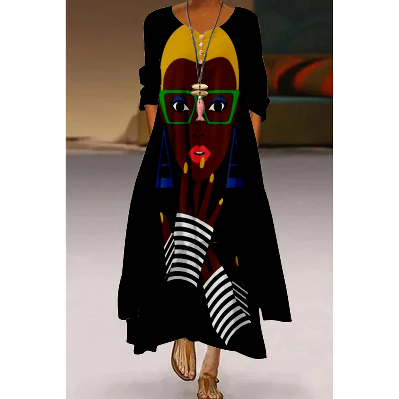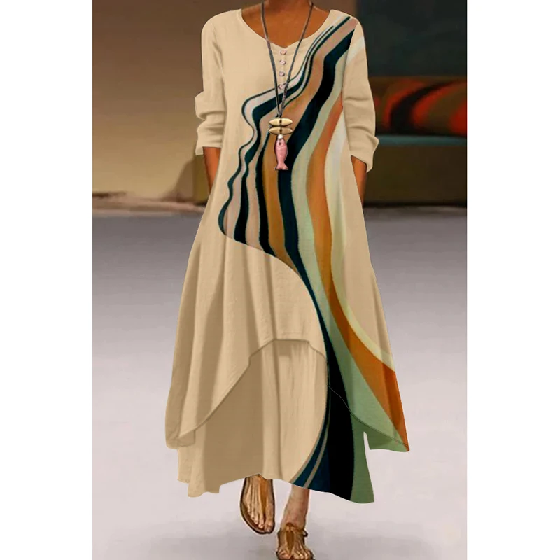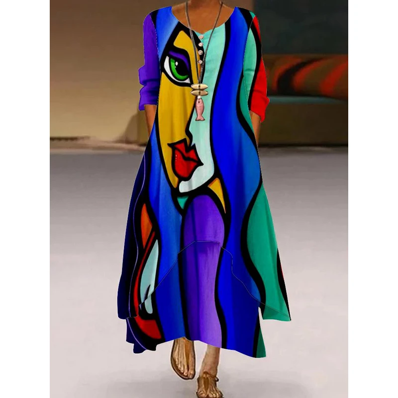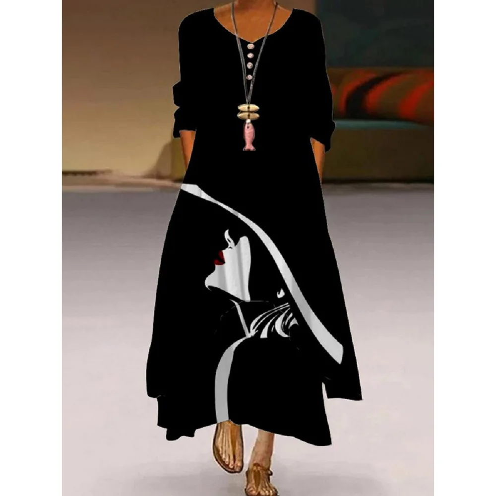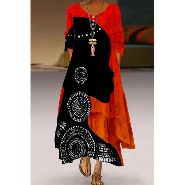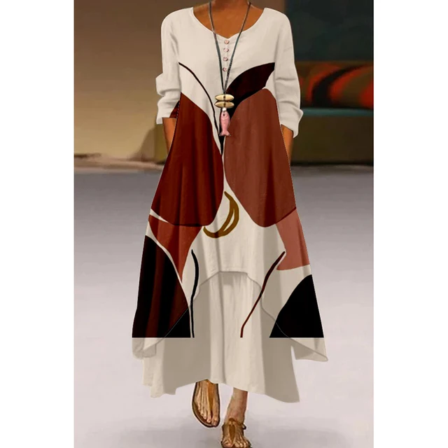 Женское винтажное платье с оборками на подоле, повседневное облегающее платье с длинным рукавом и абстрактным принтом, вечернее платье для вечеривечерние, лето