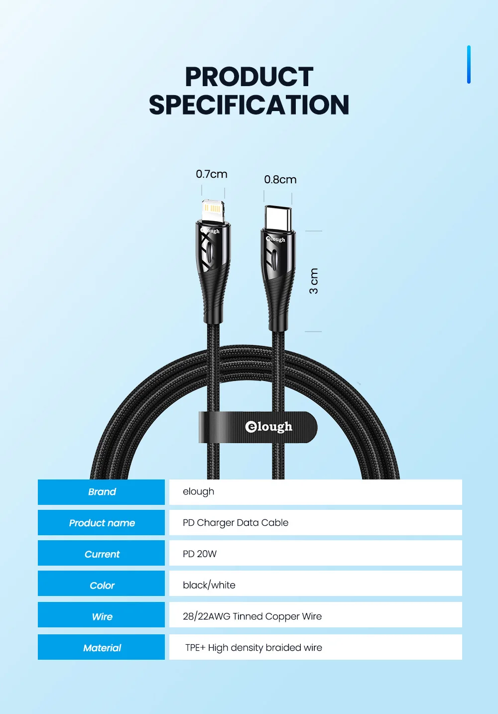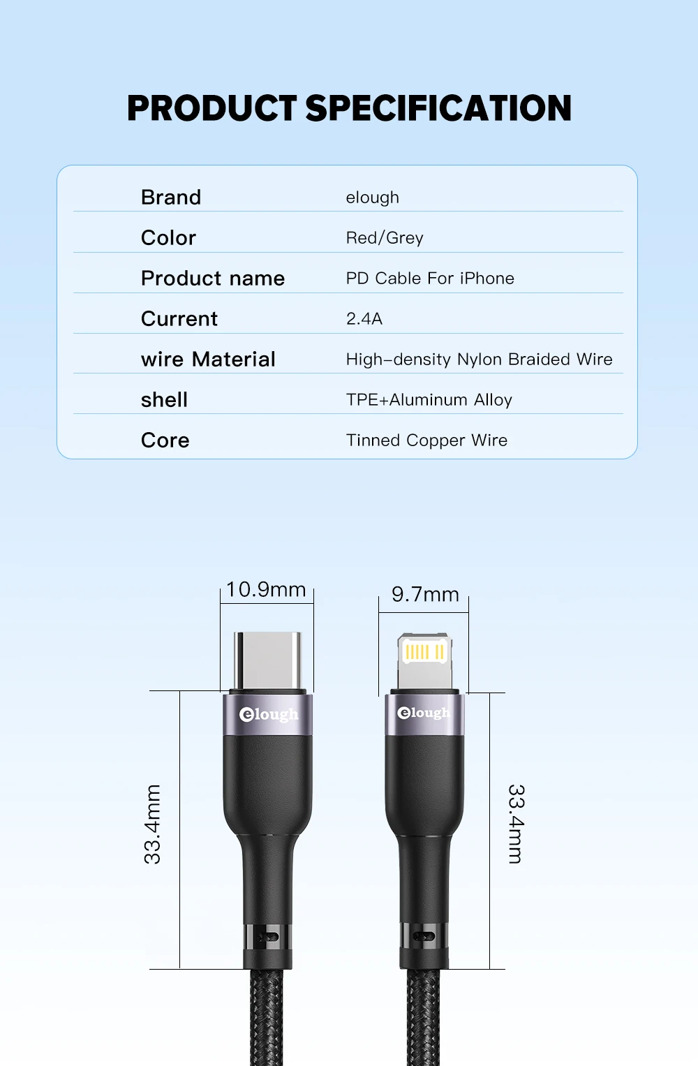 Кабель зарядный Elough USB Type-C, 20 Вт, для IPhone 131211 Pro Max