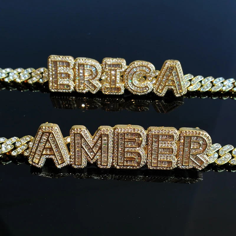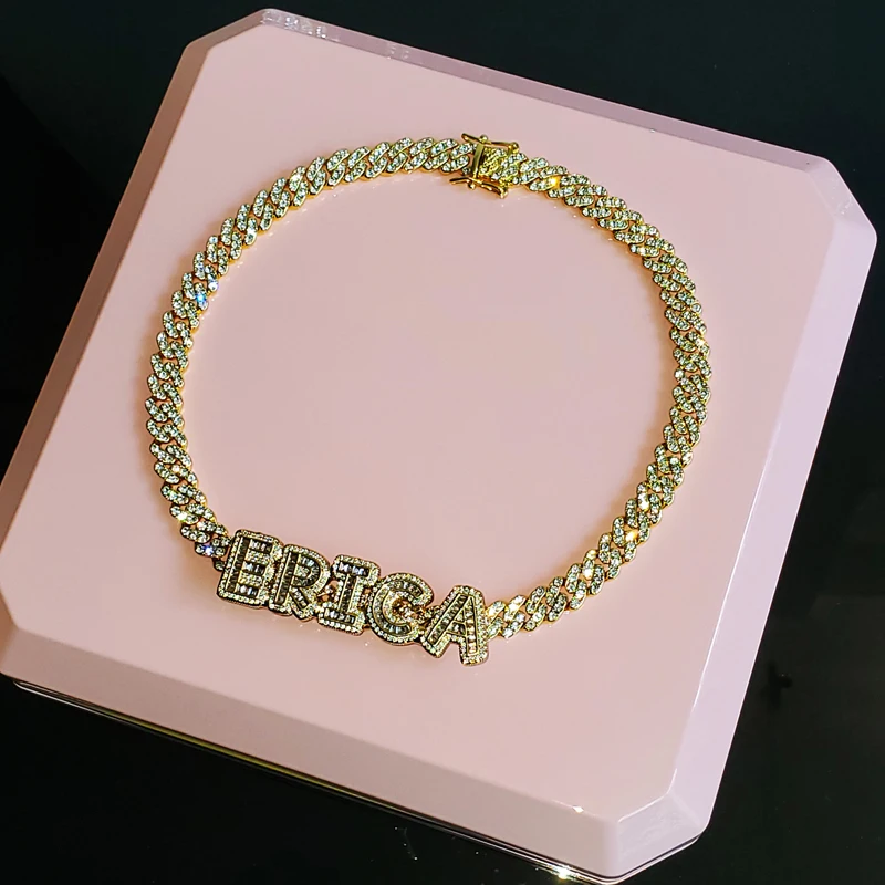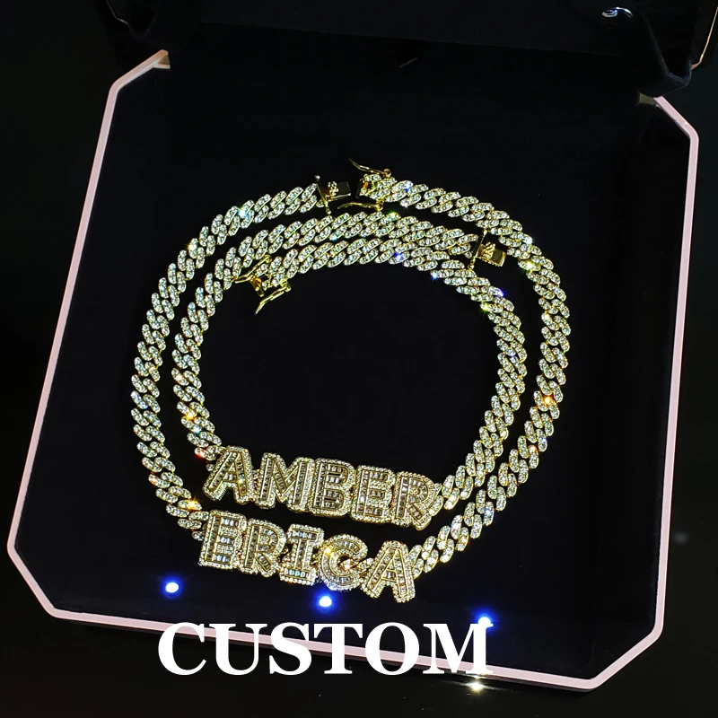 Ожерелье с именем из циркония на заказ с кубинской цепочкой 9 мм стразы, ожерелье-чокер с надписью со сверкающими буквами для женщин, подарок на день рождения