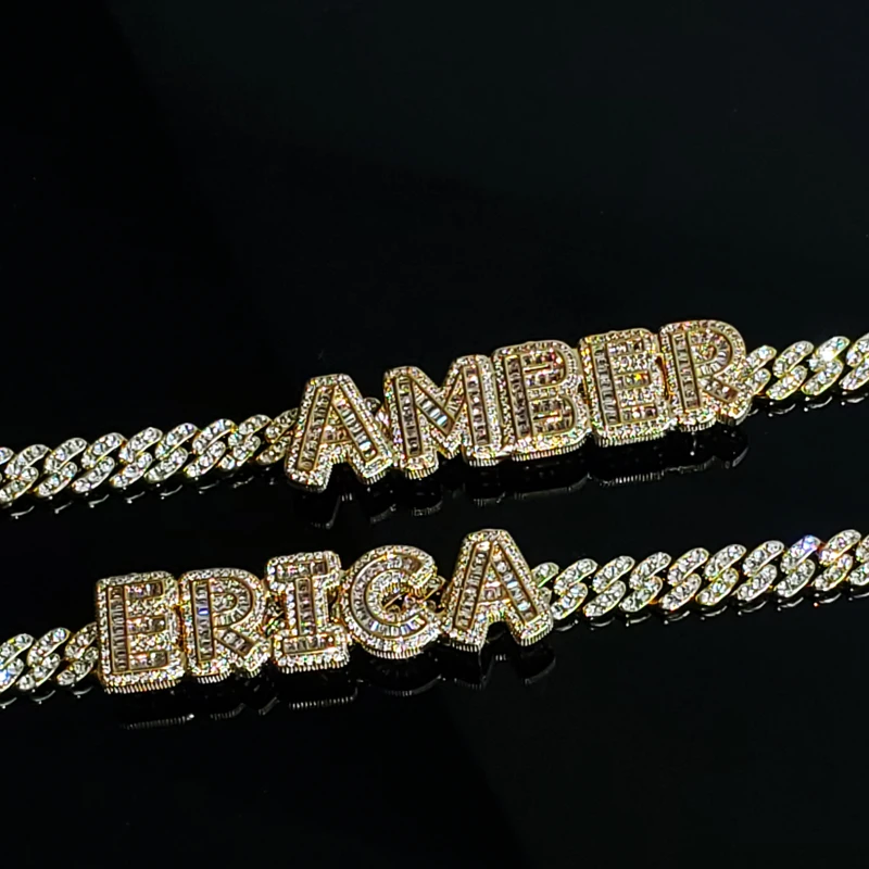 Подвеска с именем под заказ с кубинской цепочкой Стразы 9 мм, ожере...