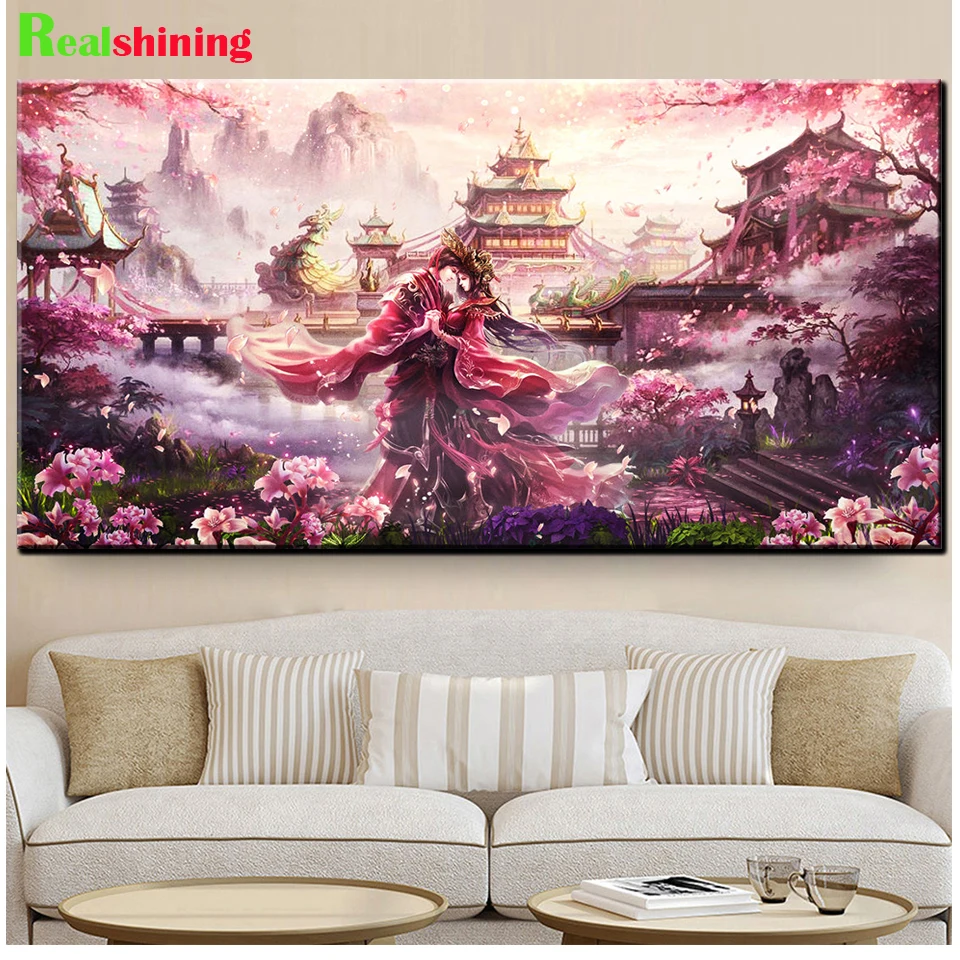 Японские храмы фантазия 5D Сделай Сам, алмазная живопись, мозаика, полная выкладка, Сакура, Самурай, алмазная вышивка, алмазная вышивка N2385