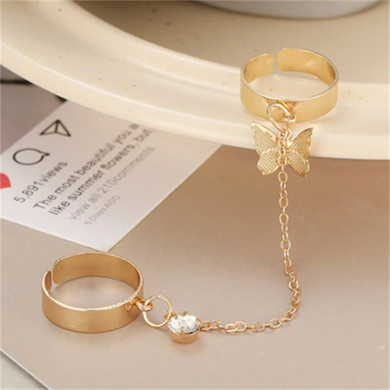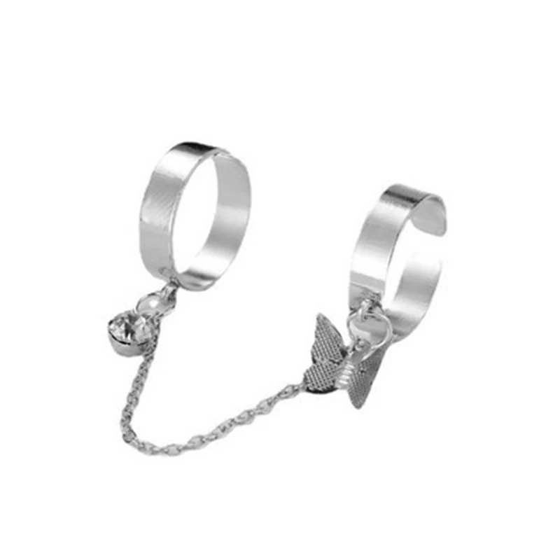 Личность Бабочка цепи кольца для женщин Винтаж блеск двойные кольца...