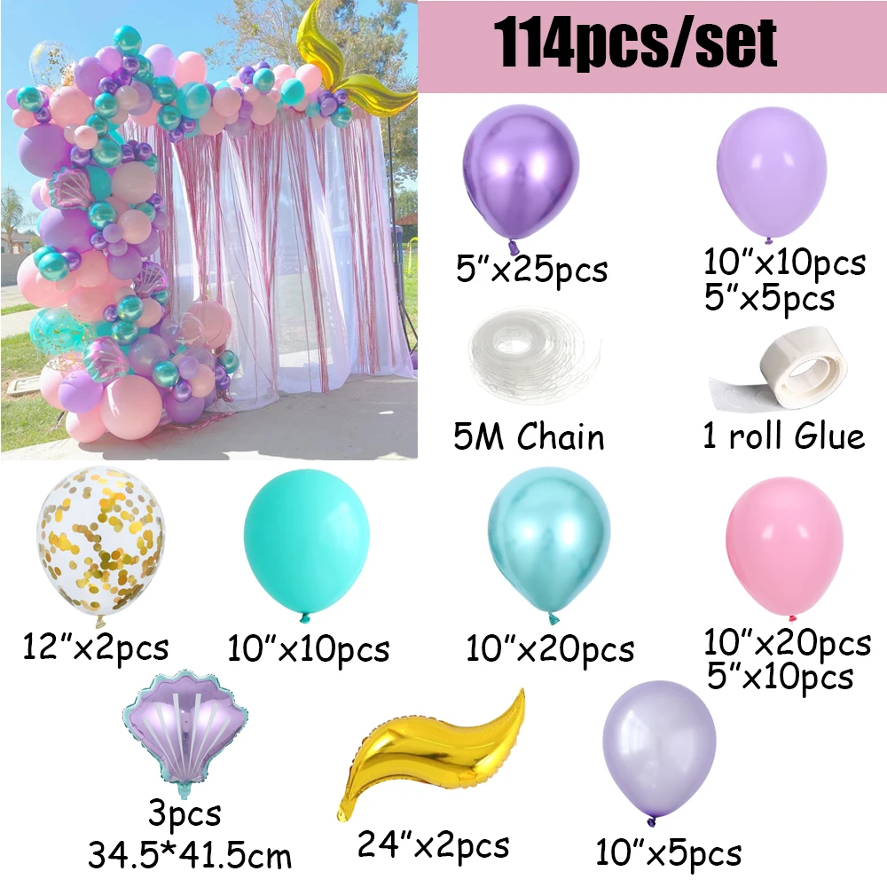 114 шт., хвост русалки, воздушный шар, комплект гирлянды, арка, тема русалки, свадьба, день рождения, вечеринка, украшения детский душ, Детские воздушные шары русалки