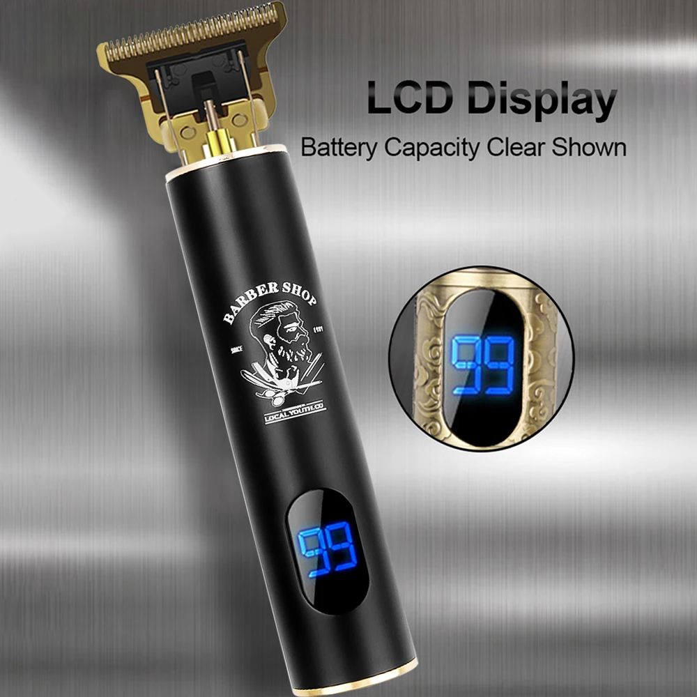 Машинка для стрижки волос Мужская, аккумуляторная, с Т-образным ЖК-...