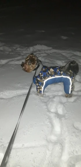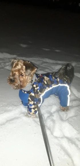 Хороший комбинезон. На питбуля 6 месяцев 16кг 26 размер впритык, на сезон хватит. Качество хорошее.