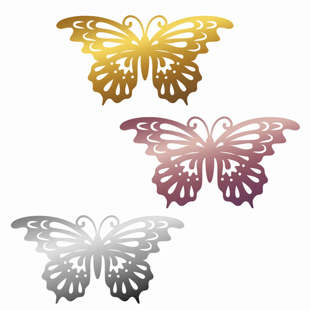 12 шт. 3D Наклейка на стену в виде бабочки s полые золотыесеребряныерозовые Золотые Зеркальные стены с металлической текстурой настенное Искусство Наклейка для домашнего декора