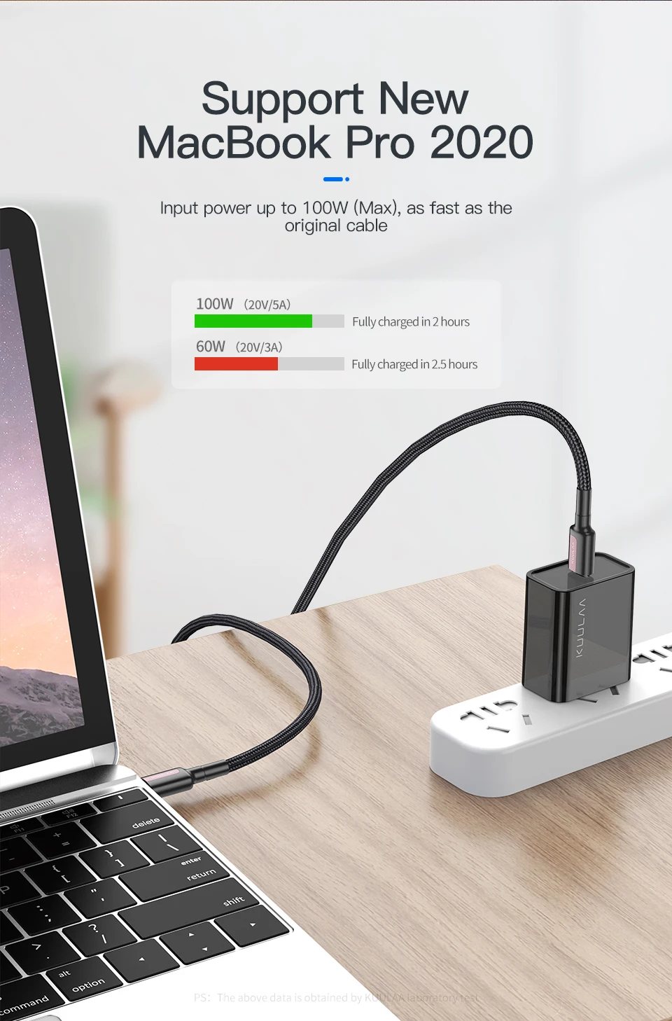 Кабель KUULLAA PD 100 Вт с USB C на Type C QC 3,0, кабель для быстрой зарядки и передачи данных 4,0, кабель для быстрой зарядки Samsung, Xiaomi, Macbook Pro, USBC