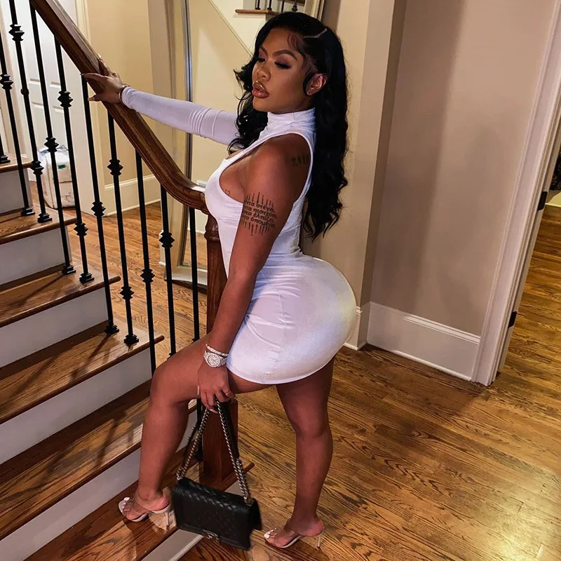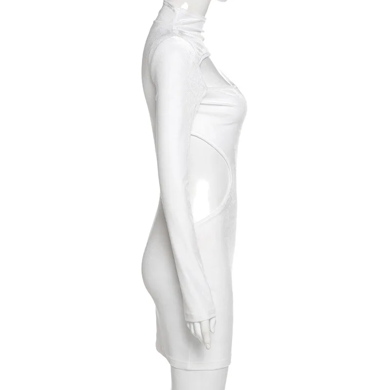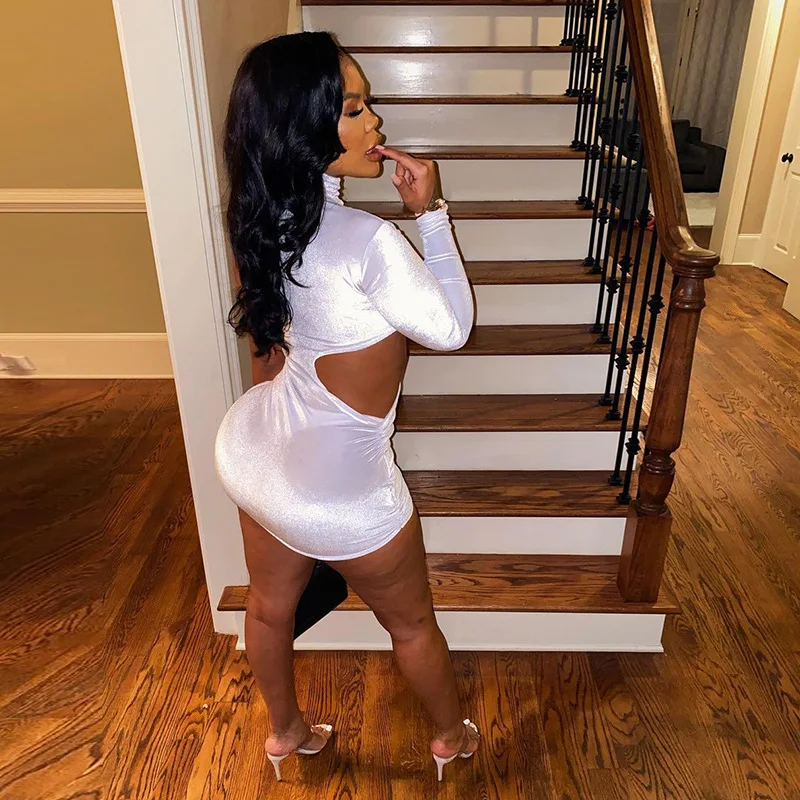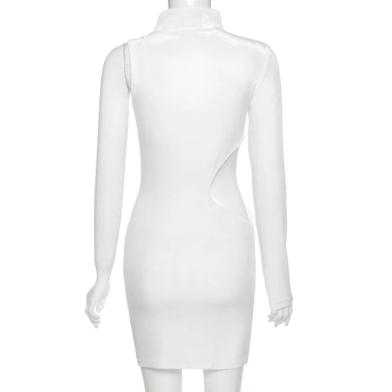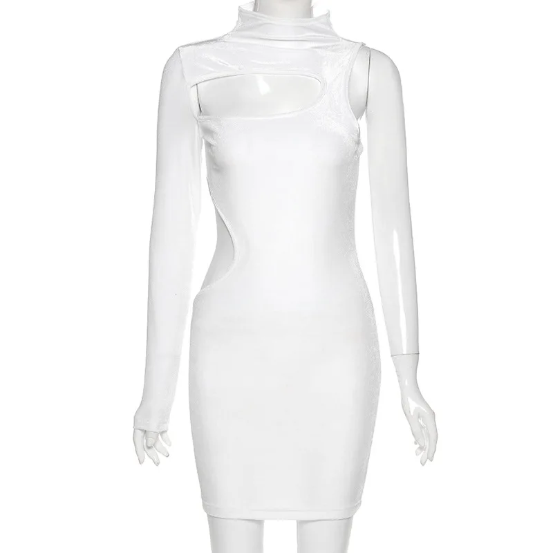 Соблазнительное облегающее женское платье HAASKEW, Клубная одежда с низким вырезом, открытой спиной и одним рукавом, вечернее мини-платье с воротником-стойкой, осень 2021