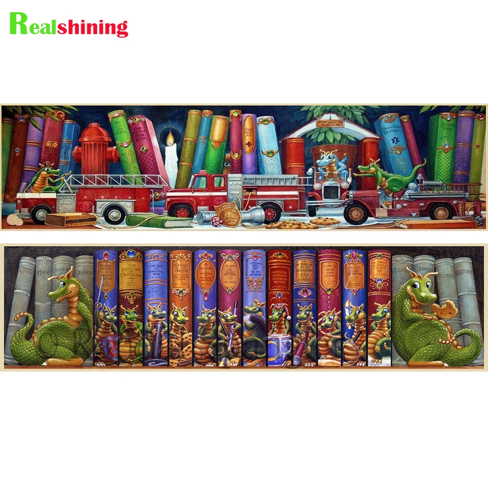 Зеленые динозавры, полная 5D картина из страз своими руками, мультфильм, книга, библиотека, алмазная вышивка, мозаика стразы, большая N2388