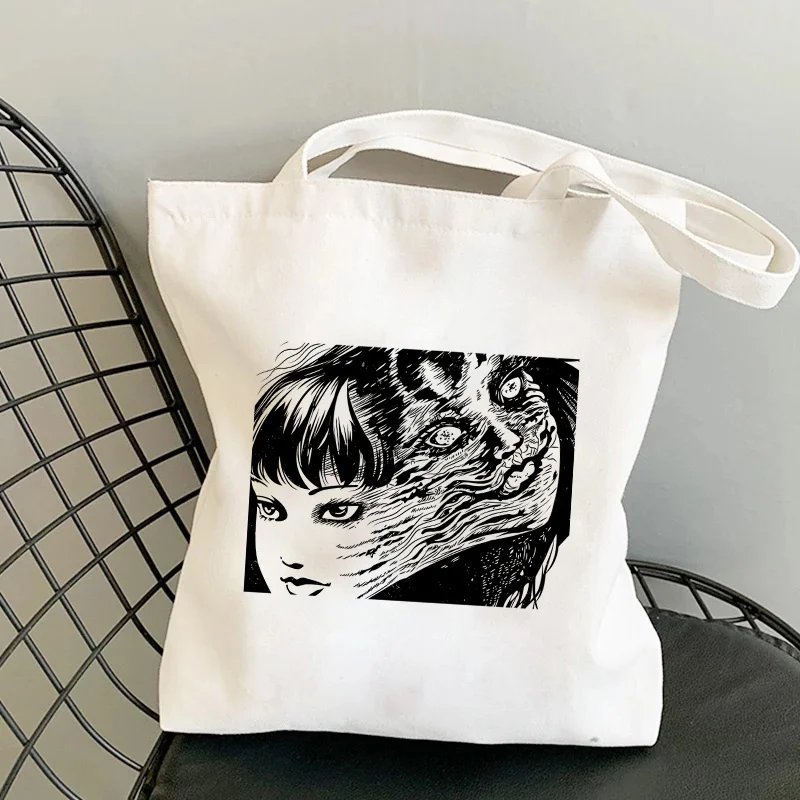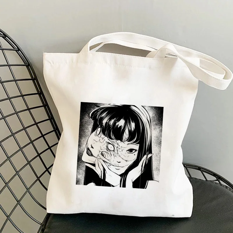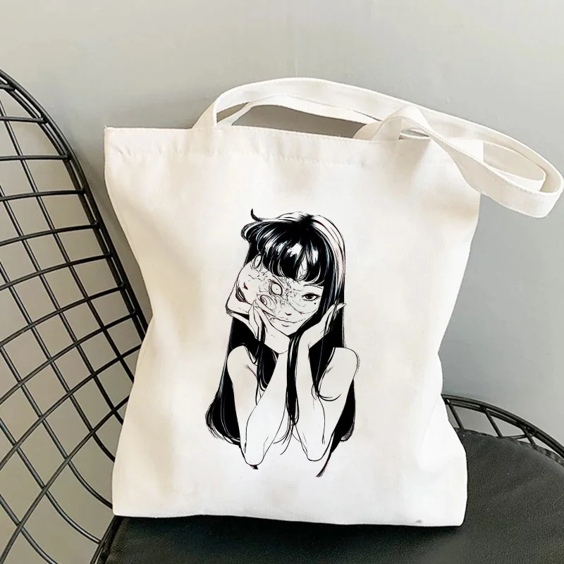 Японские Женские сумки Tomie в стиле аниме, Готическая холщовая сумочка в стиле Харадзюку, вместительная сумка-шоппер с ужасным мультяшным принтом, модная повседневная сумка на плечо