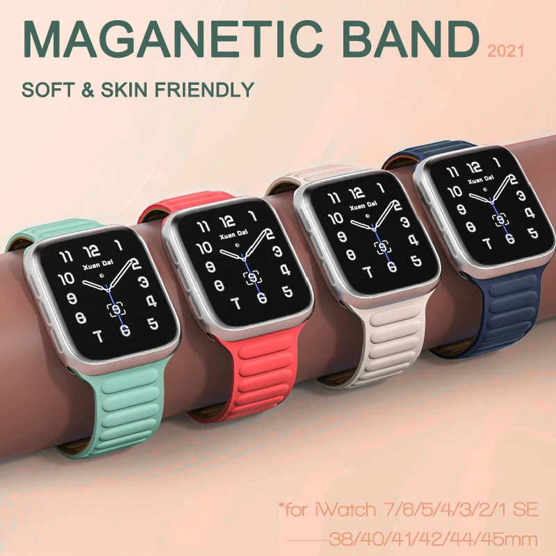 Ремешок силиконовый магнитный для Apple Watch Band 44 мм 40 мм, спортивный резиновый браслет для iWatch Series 7 6 SE 5 4 3 2 42 мм 41 мм
