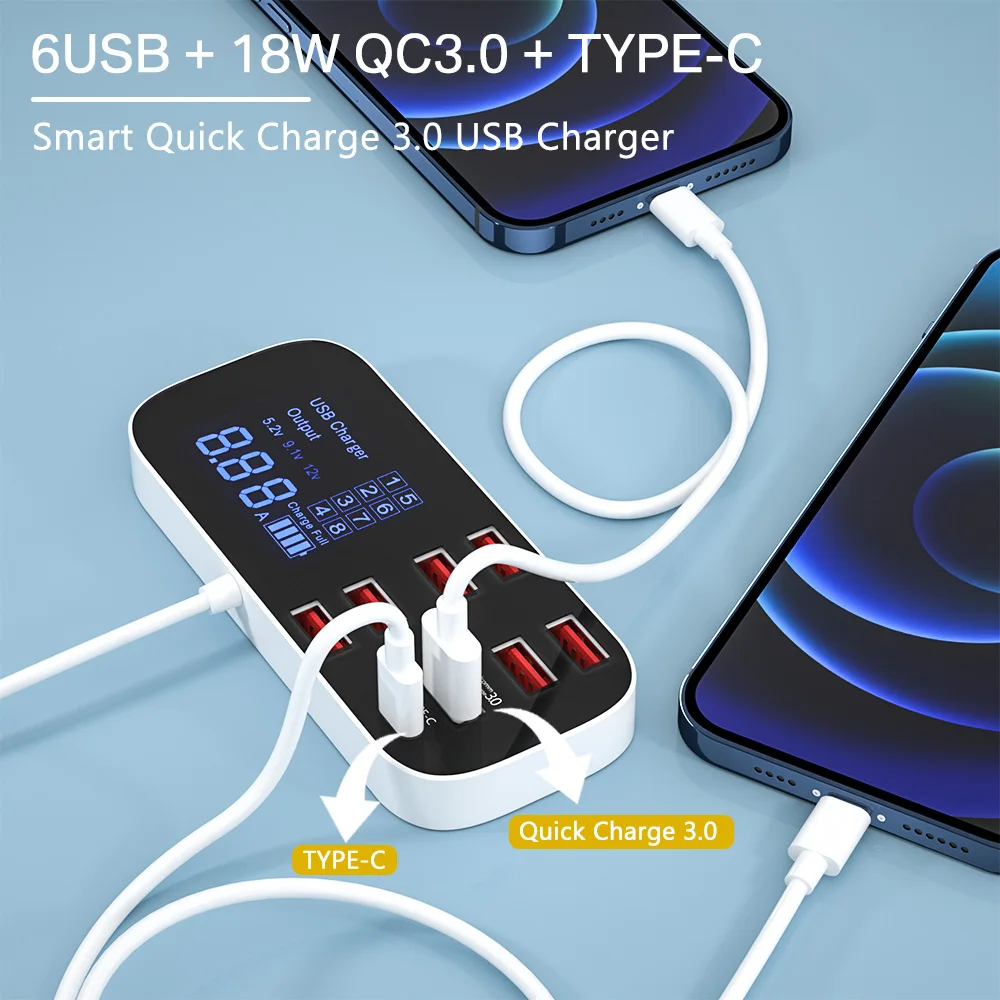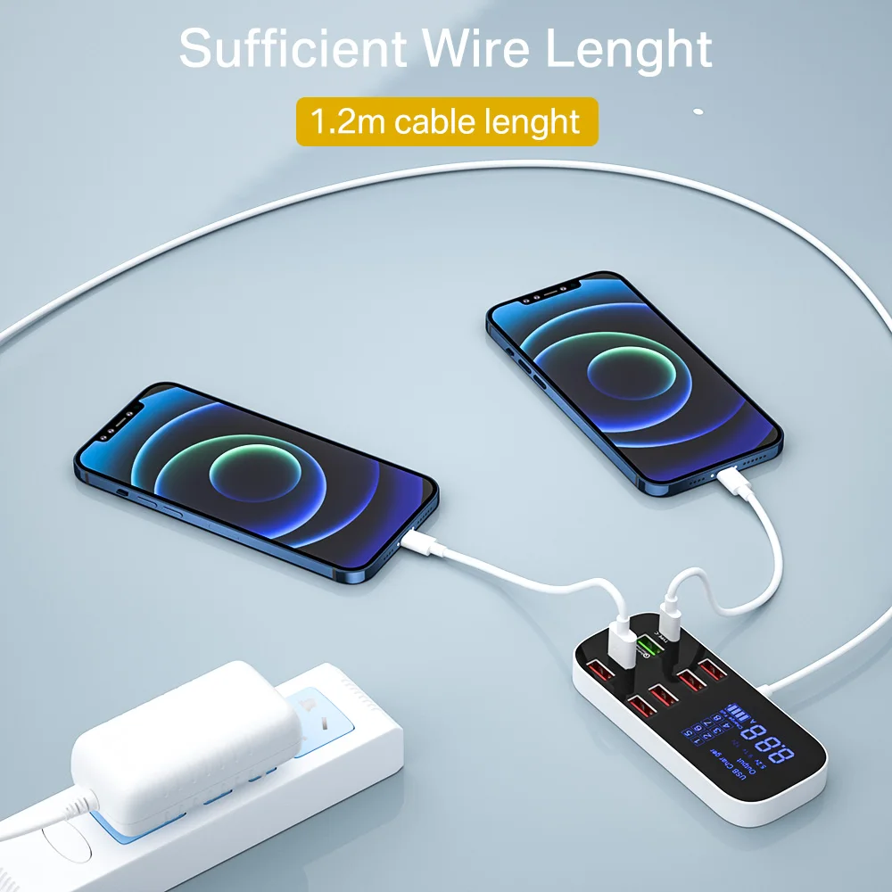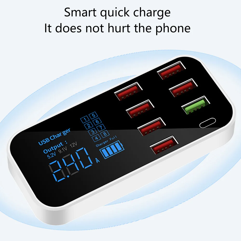 Бытовое зарядное устройство с 8 USB-портами и светодиодным дисплеем, 40 Вт