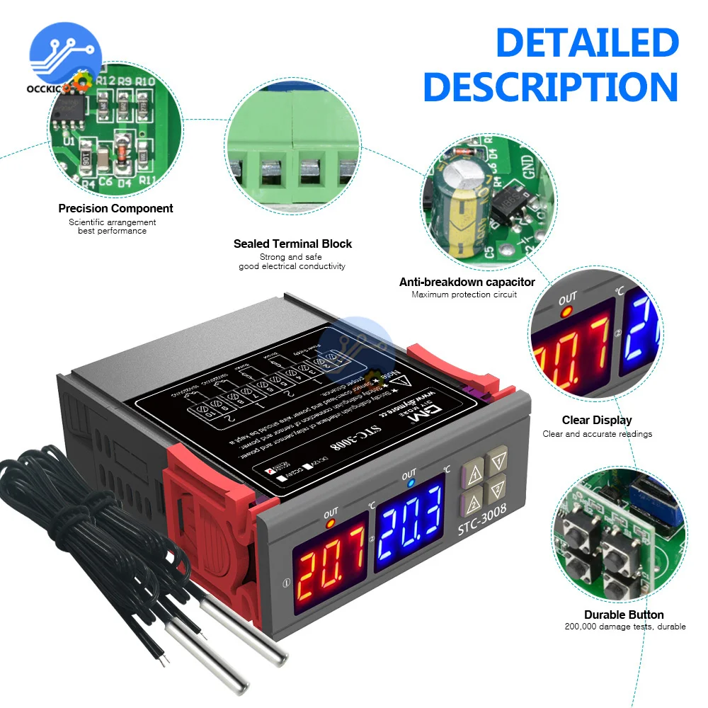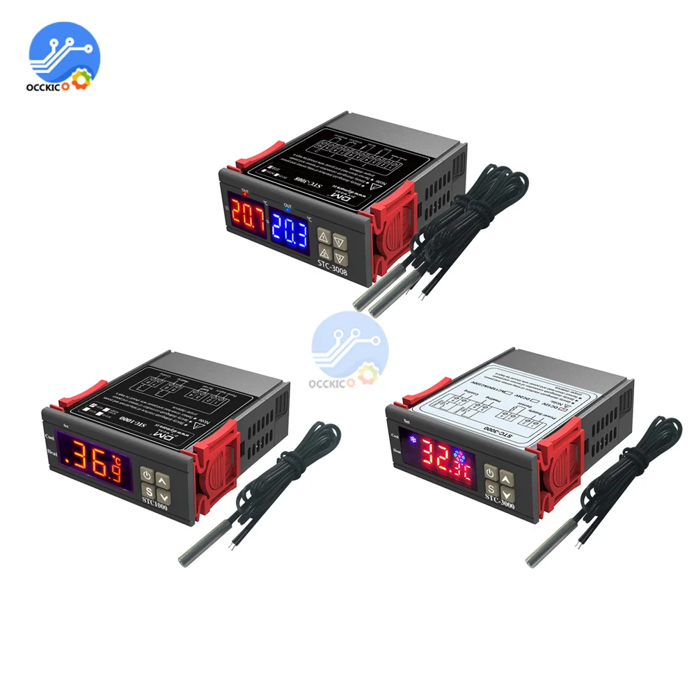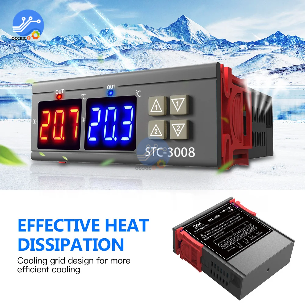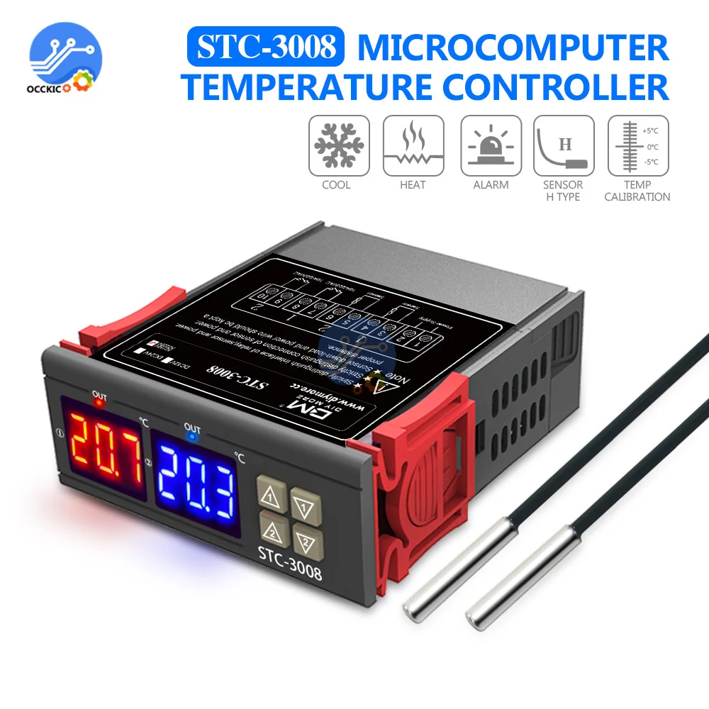 Цифровой термостат, двойной светодиодный регулятор температуры, регулятор нагревания и охлаждения, 3000, 3008, 110, 220 В постоянного тока