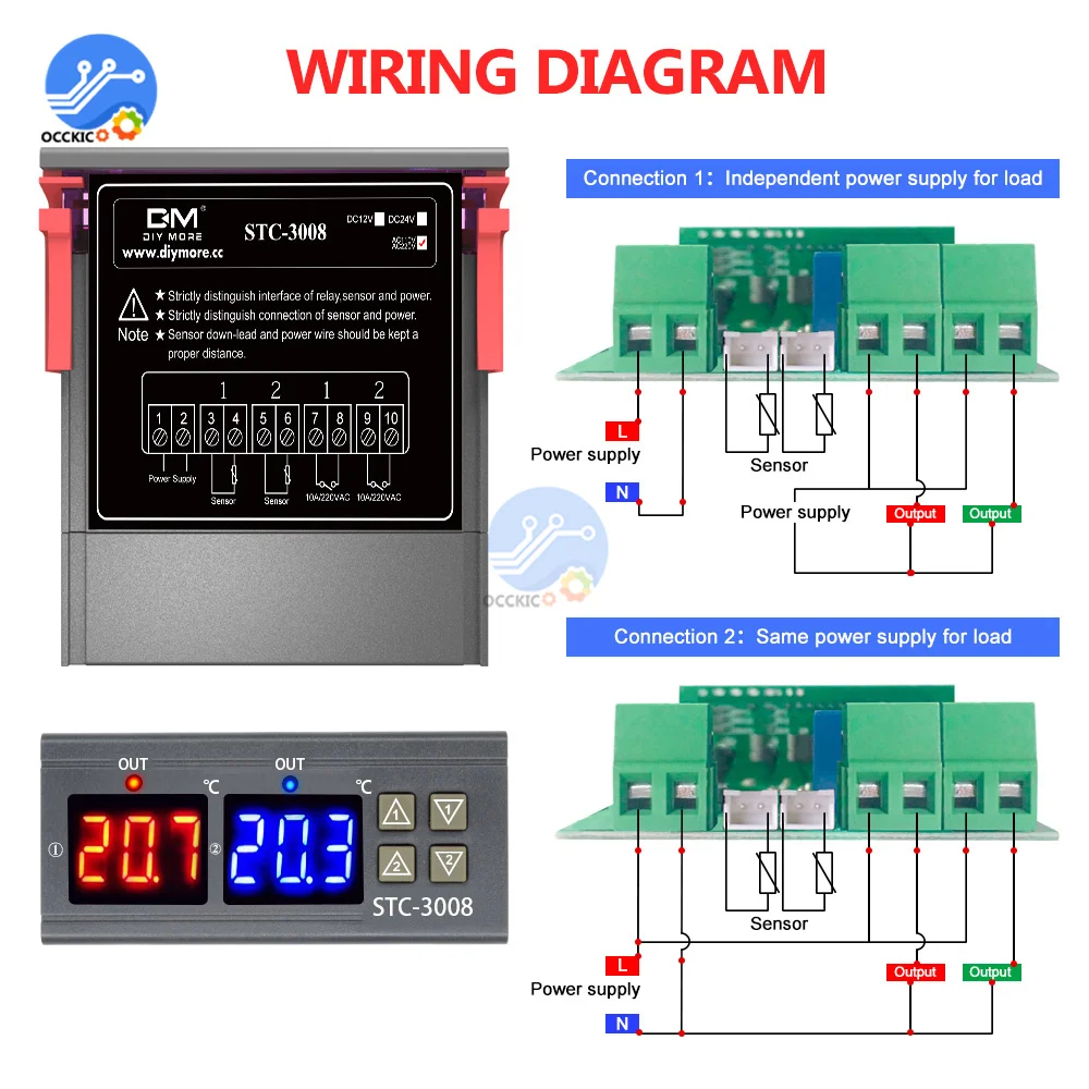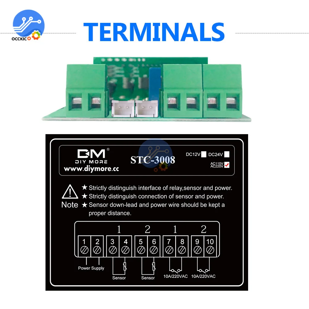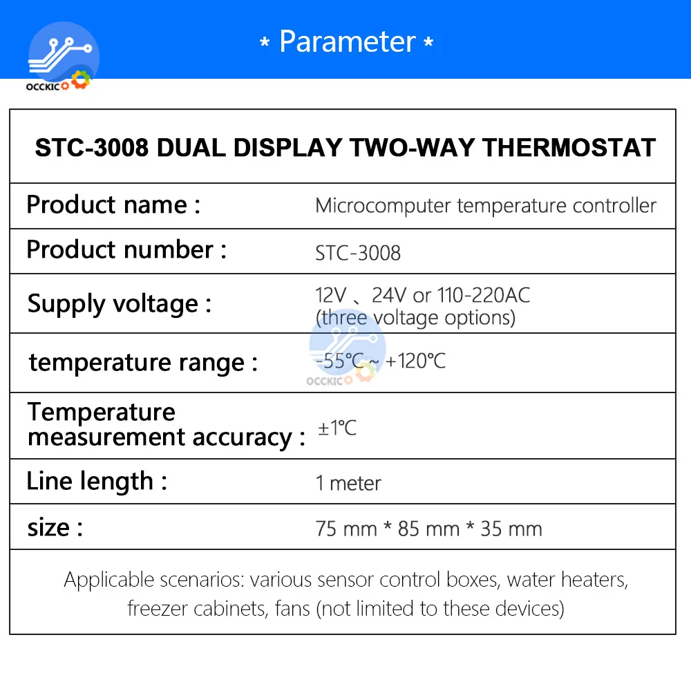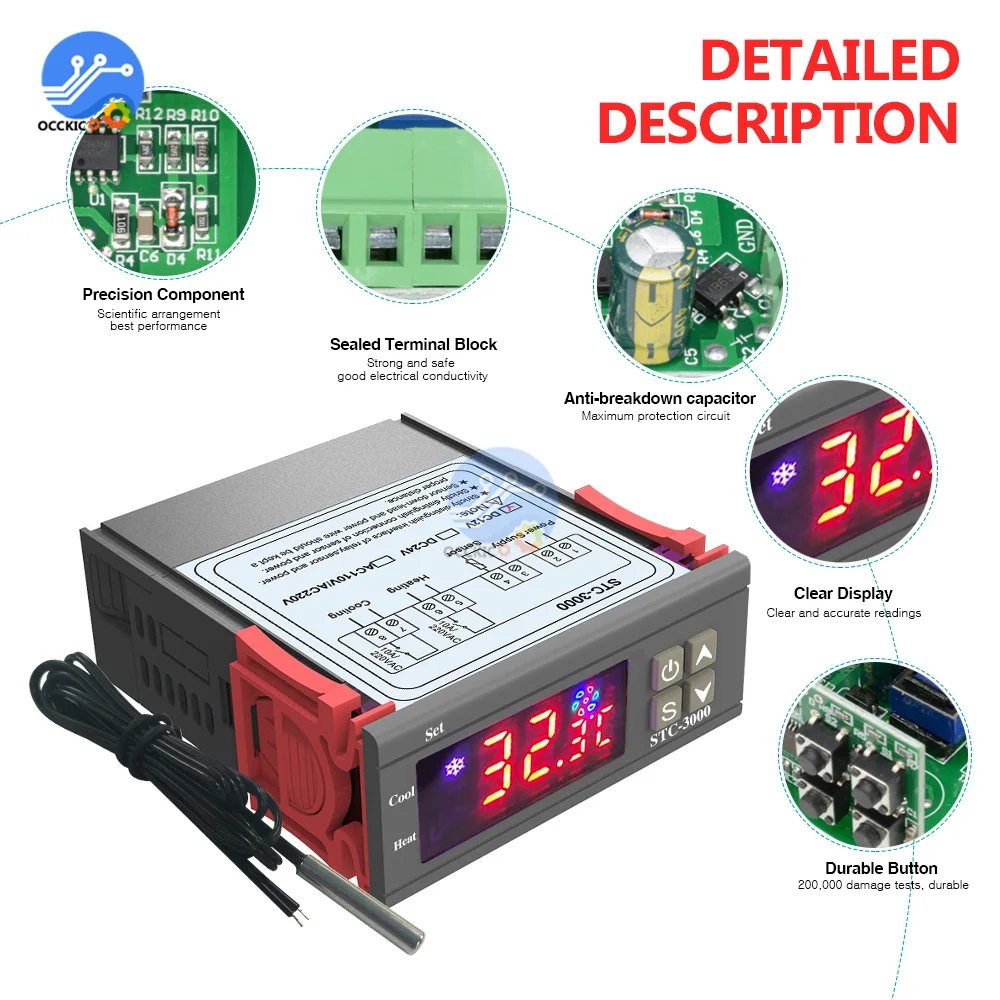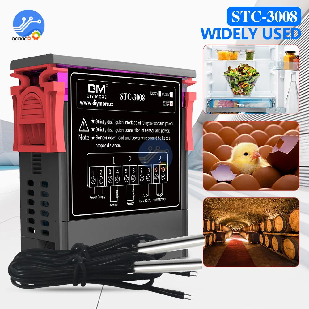 Цифровой термостат, двойной светодиодный регулятор температуры, регулятор нагревания и охлаждения, 3000, 3008, 110, 220 В постоянного тока