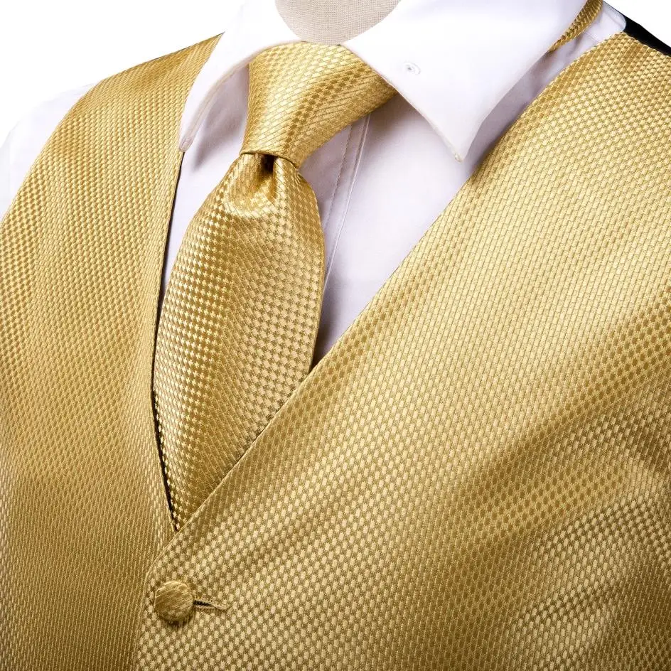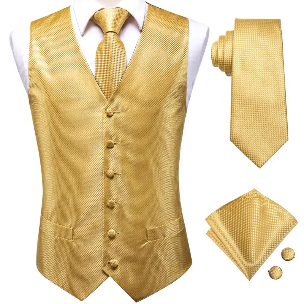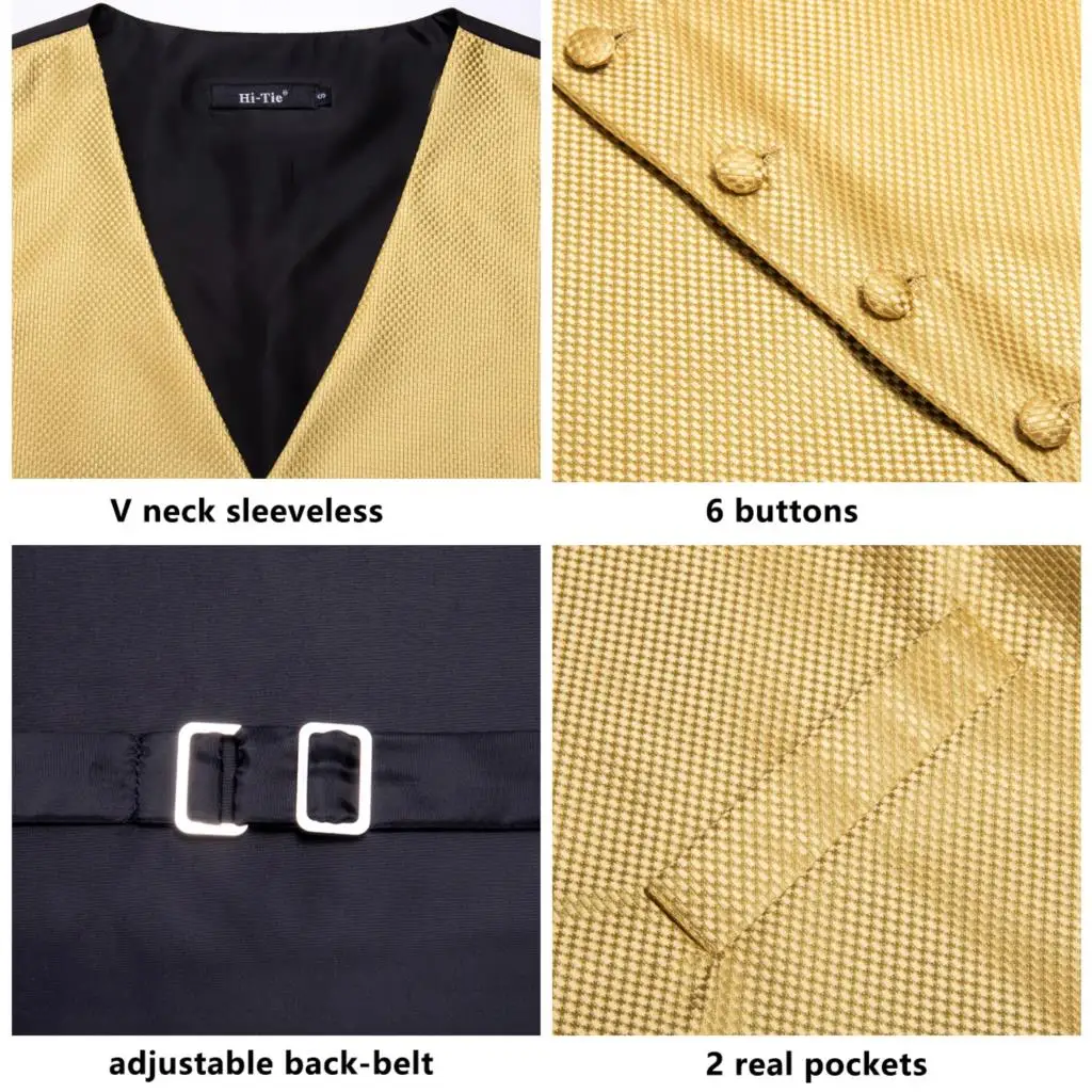 Hi-Tie жаккардовый Шелковый мужской костюм жилетки Золотой однотонный 4 шт жилет с галстуком Hanky запонки набор бизнес свадебное платье приталенная куртка