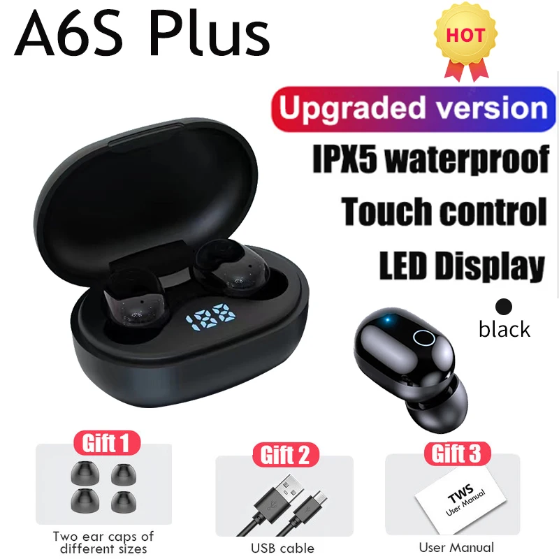 A6S Plus TWS беспроводные наушники, Bluetooth гарнитуры, стерео наушники, спортивные мини-наушники с шумоподавлением для Xiaomi iphone