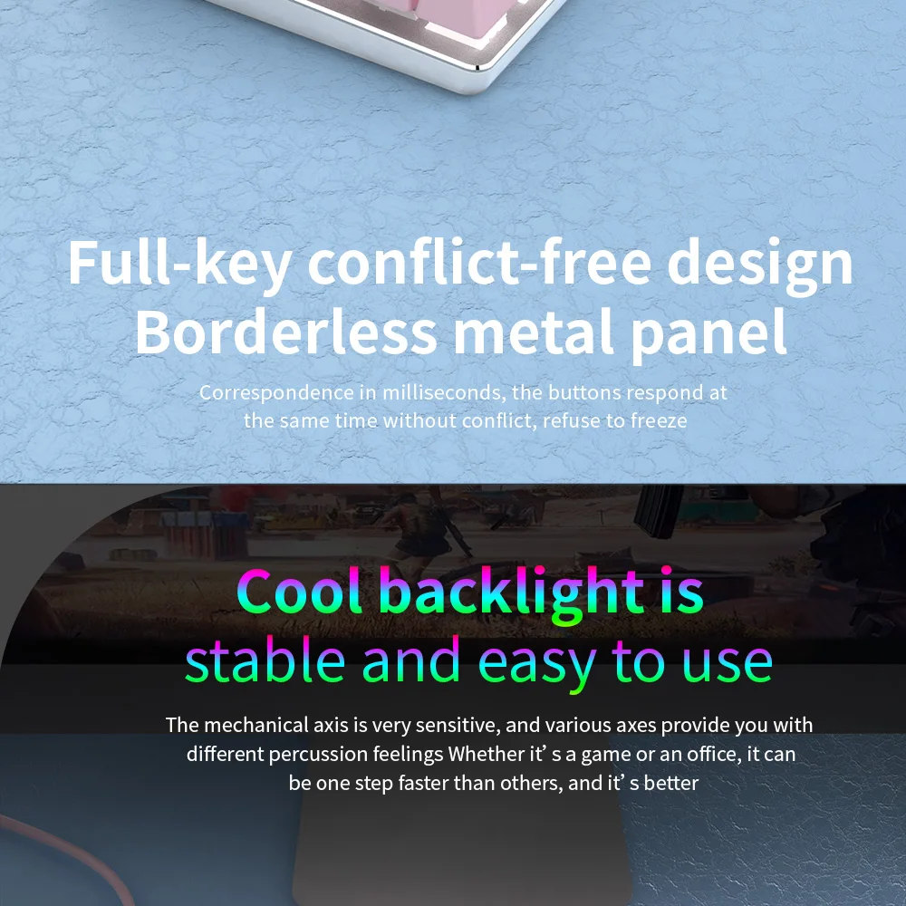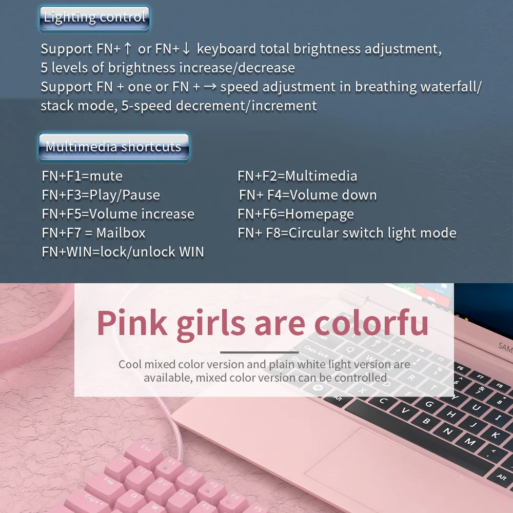 Keyboard BacklitNo Light/Blue Light/White Light/Pink Light/RGB Light Optional
