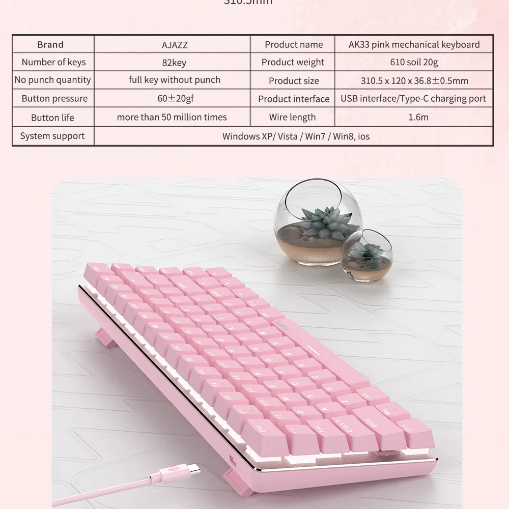 Ajazz AK33 Механическая игровая клавиатура черный/синий/красный переключатель 82 клавиши Проводная клавиатура для ПК Игр эргономичный дизайн клавиатуры