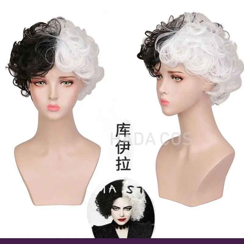 Новый фильм Круэлла парик короткие парики для Хэллоуина Косплей женские черные белые синтетические волосы парик + парик крышка 3 стиля