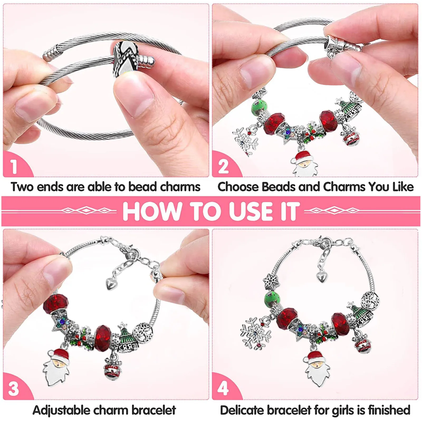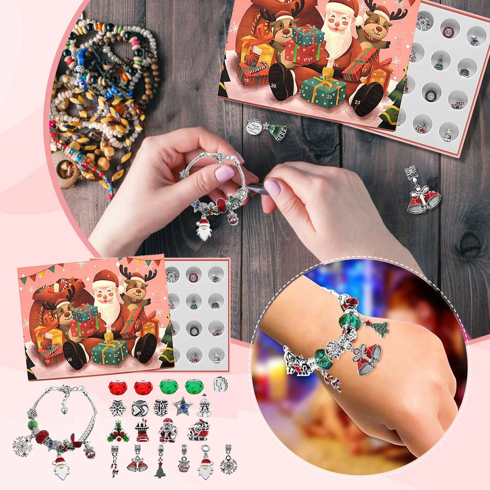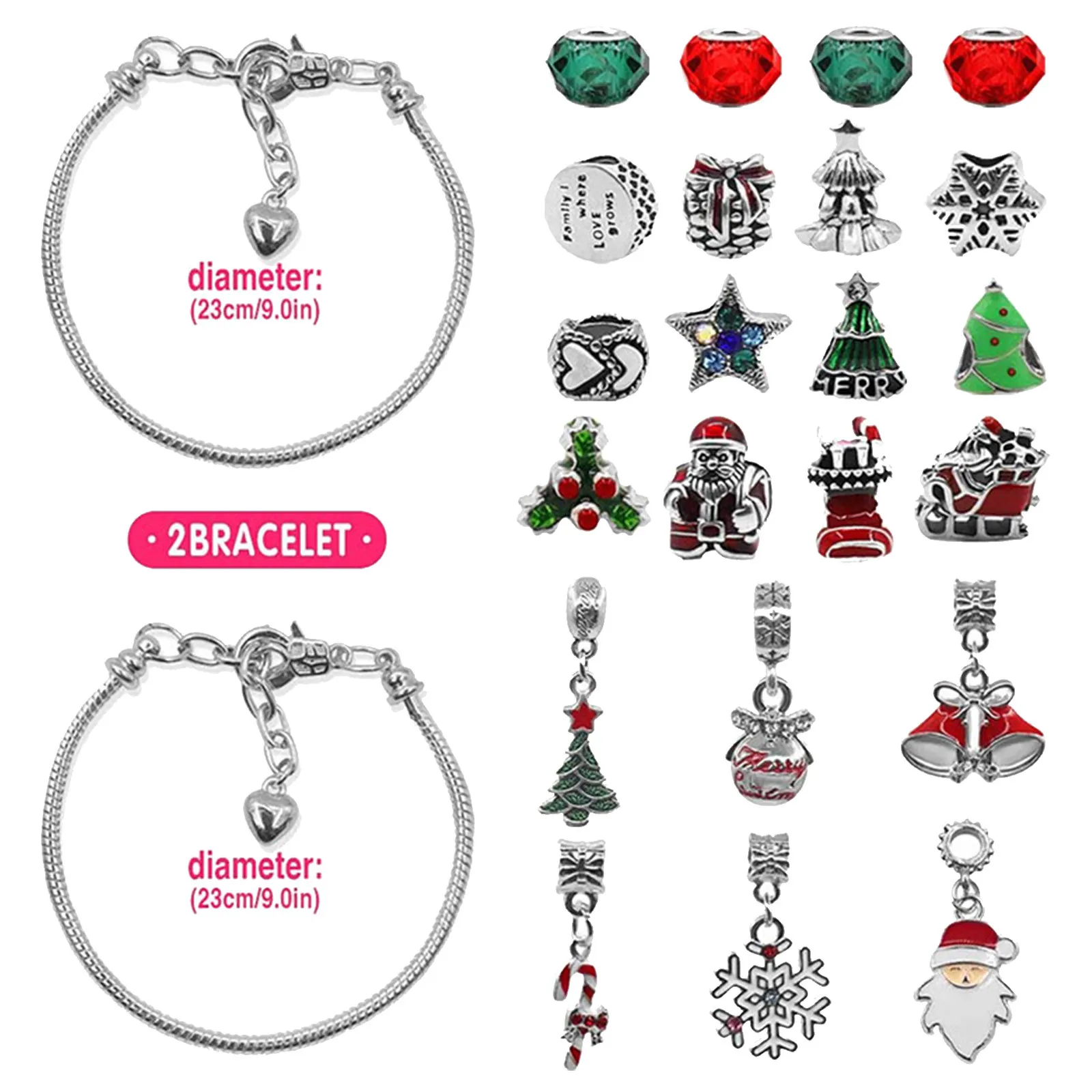 2021 Рождественская тематика DIY Подвески для создания браслета набор Адвент календарь ювелирный подарочный набор включает 22 шарма бусины, 2 браслета