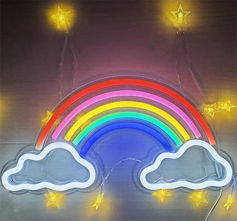 Красочная Радужная неоновая вывеска в виде облака, светодиодный ночник, настольное освещение, фотография, реквизит, декор комнаты, магазин, свадебное украшение для стен