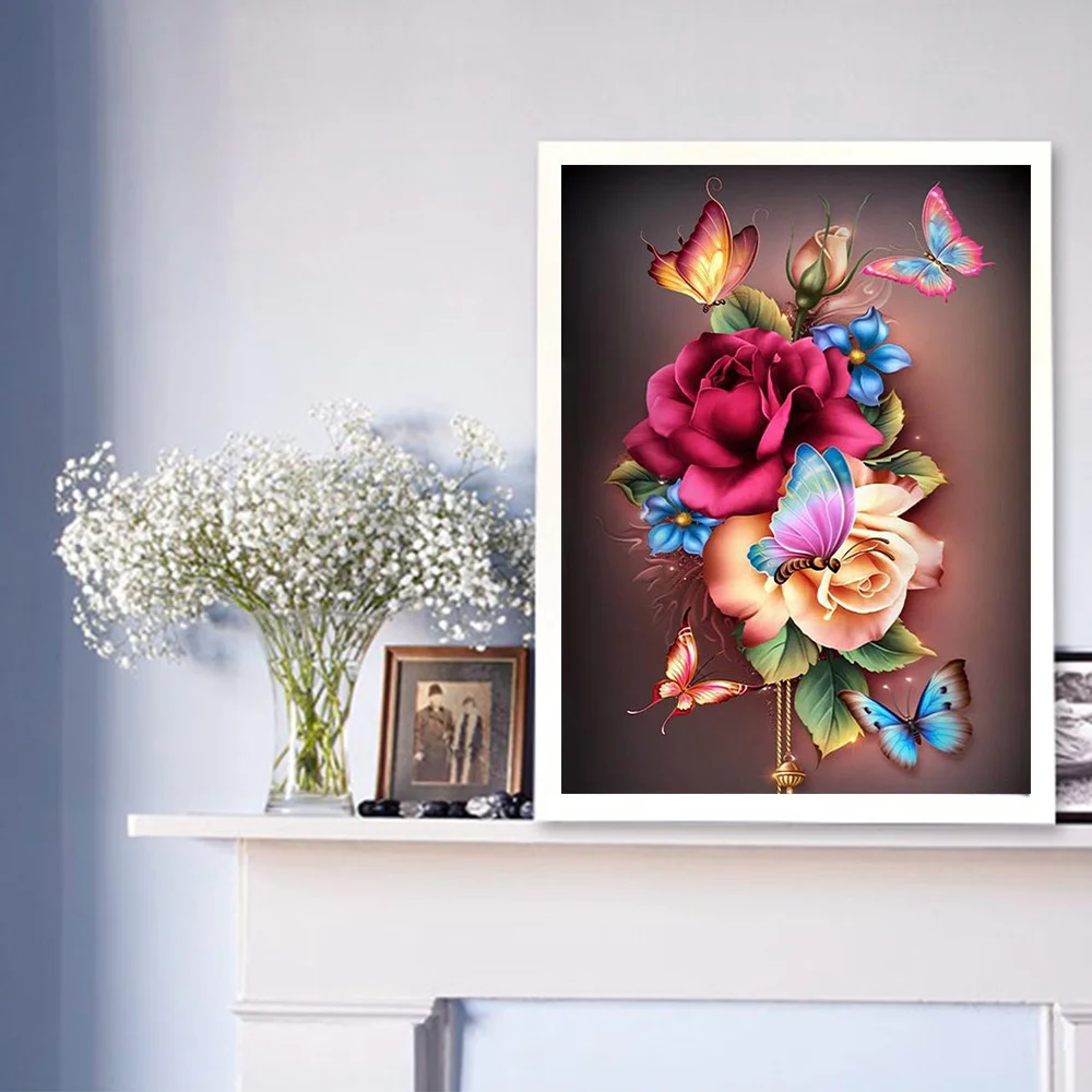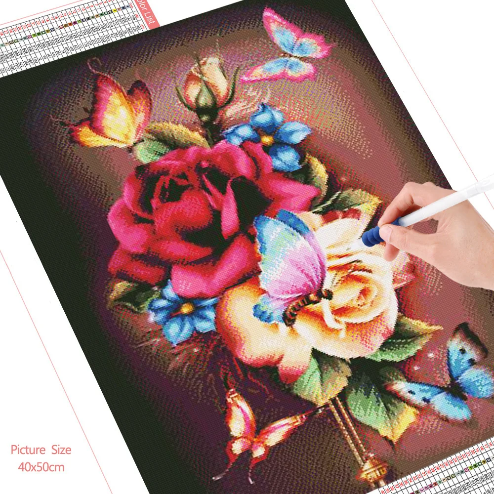 HUACAN алмазная живопись, роза, цветок, декор для комнаты, алмазная вышивка, пион, Цветочная мозаика, настенная наклейка