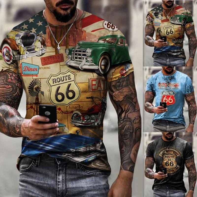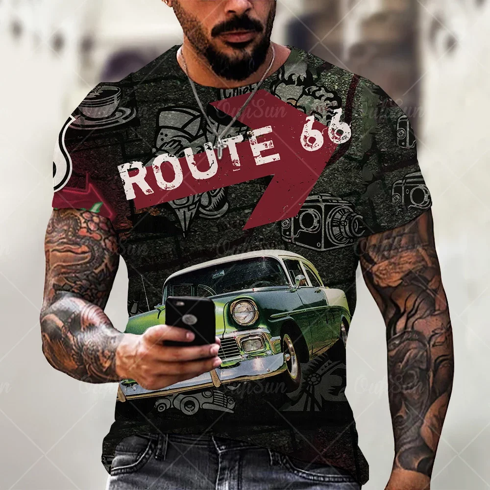 Мужская футболка с принтом в виде гоночного автомобиля, Винтажная Футболка большого размера с принтом 66 букв