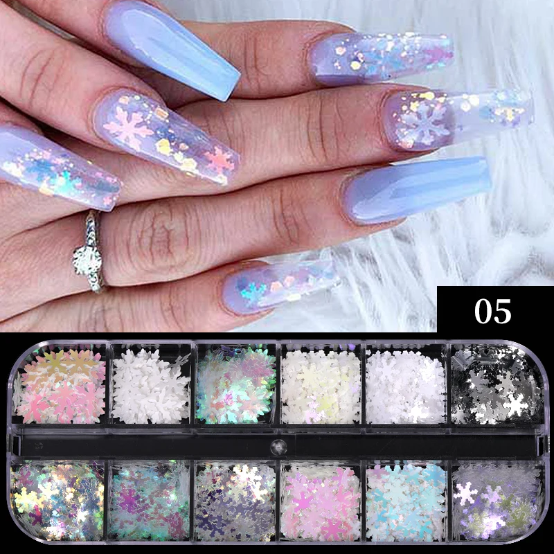 Снежинки, блестки для ногтей, снежный блеск, рождественское зимнее 3D украшение для ногтей, фотообои, DIY маникюр