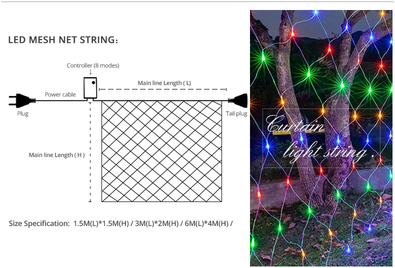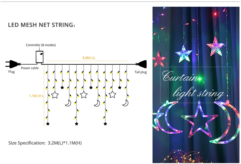 Рождественская светодиодсветильник гирлянда-занавес, 220 В, гирлянд...