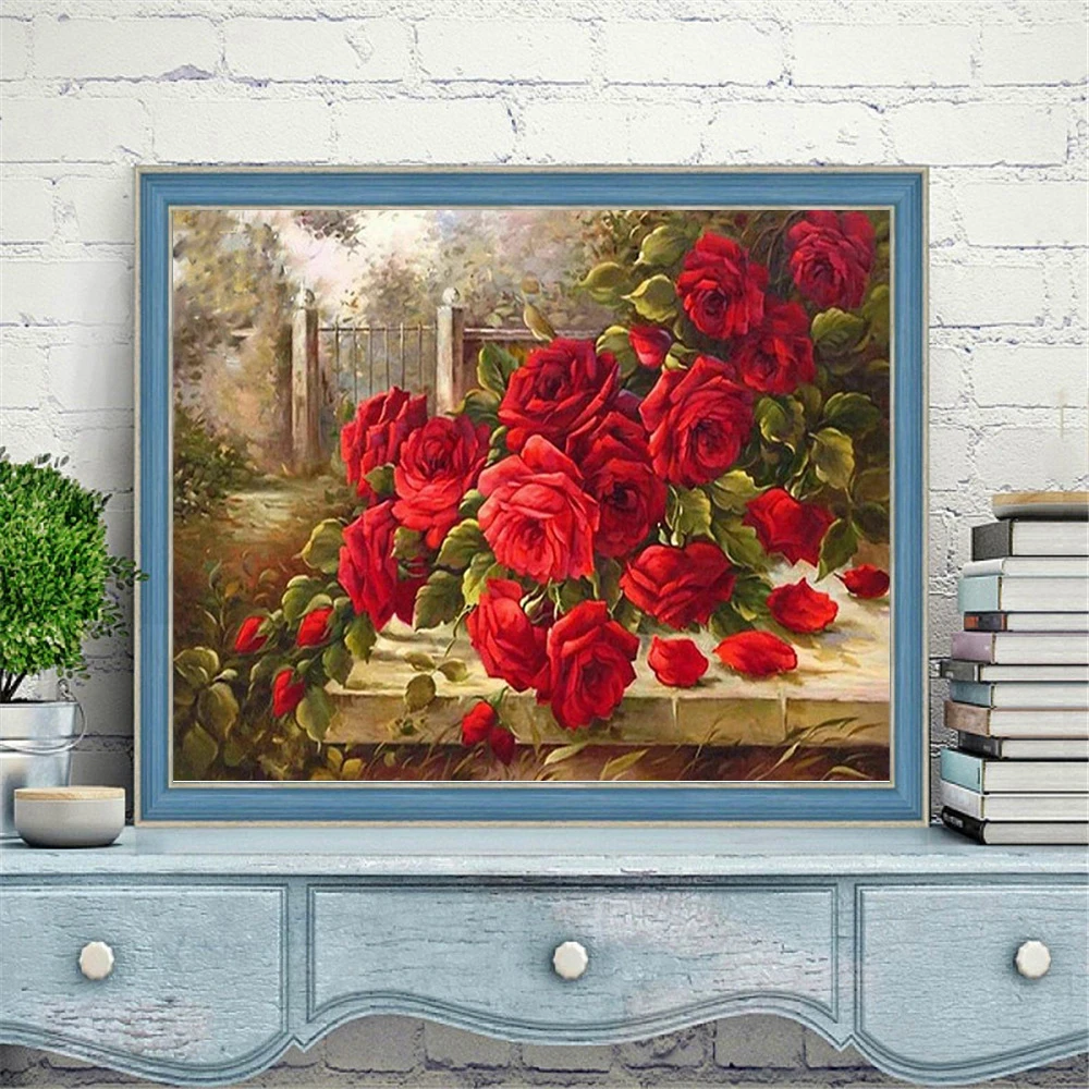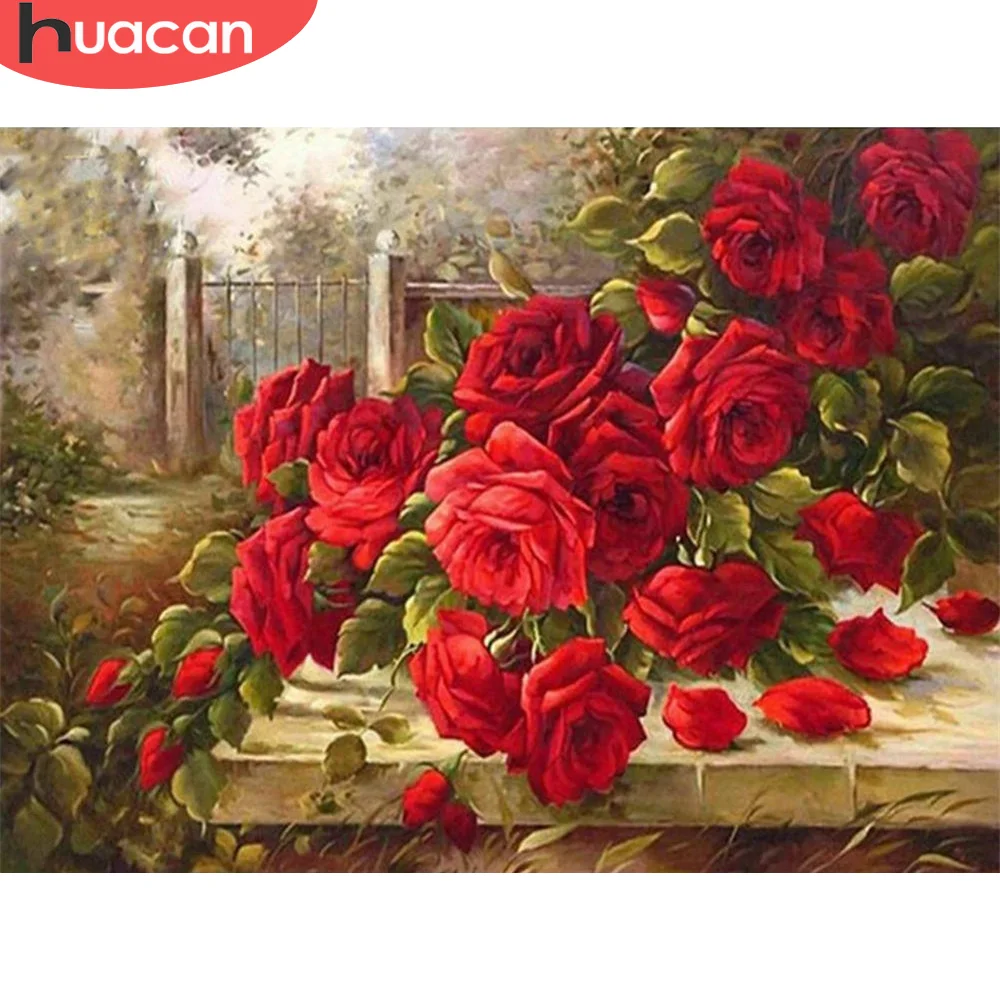 HUACAN Раскраска по номерам розы цветы наборы Ручная роспись картина рисунок на холсте для взрослых DIY рамка домашний декор 50x65cm
