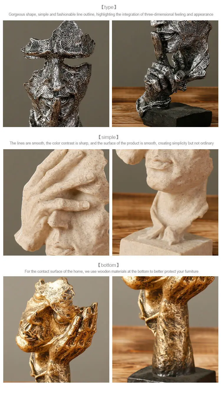 Статуэтка JIEME Молчание-золото, абстрактная статуэтка, Статуэтка из смолы, украшение для офиса, дома, аксессуары, современное искусство