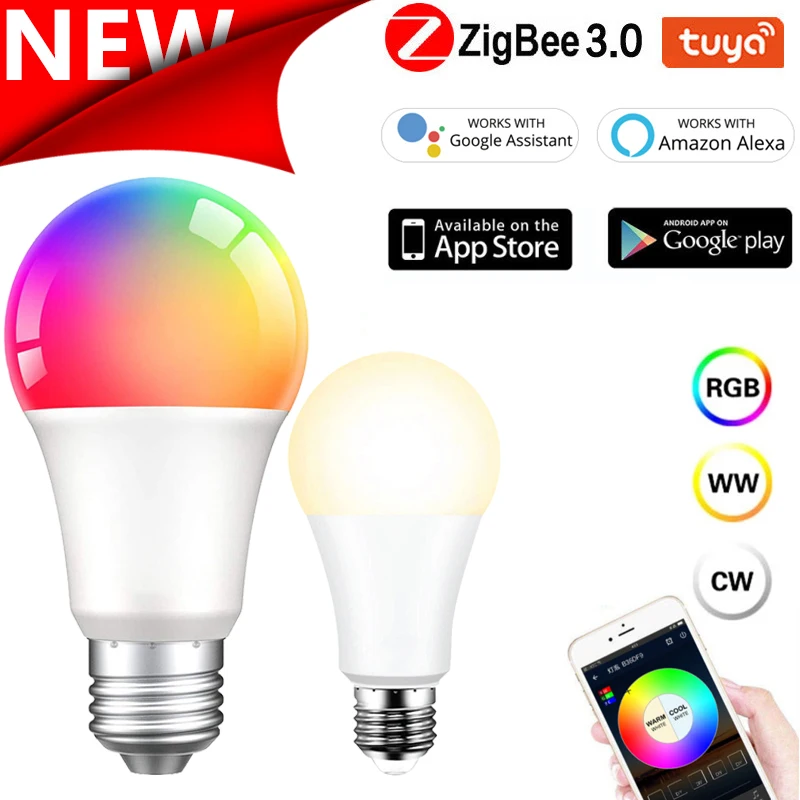 Умсветильник лампочка Zigbee с Wi-Fi, лампочка с изменением цвета, E27, 90-250 В, 9 Вт