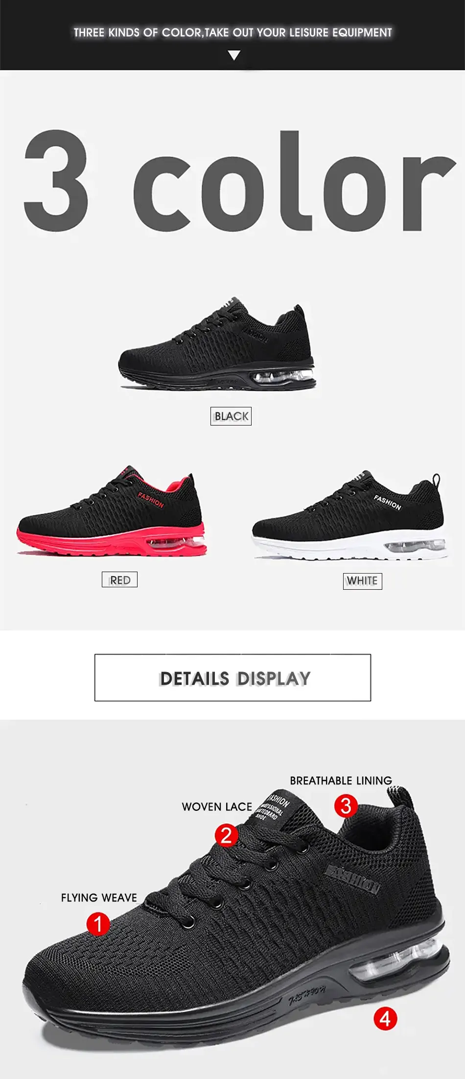 Feature 1air cushion design, reduce the pressure of the foot