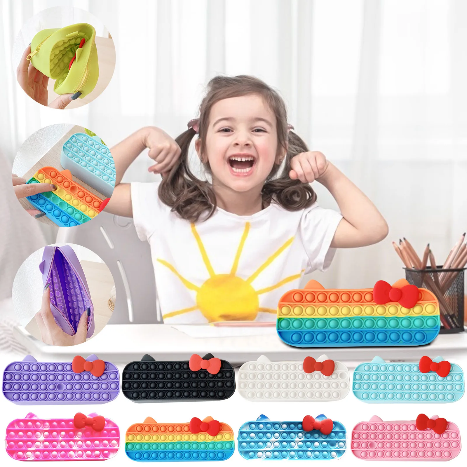 Новый чехол для карандаша с грызунами, простой силиконовый пенал с милым котенком и пузырьками для снижения давления, канцелярская сумка для хранения