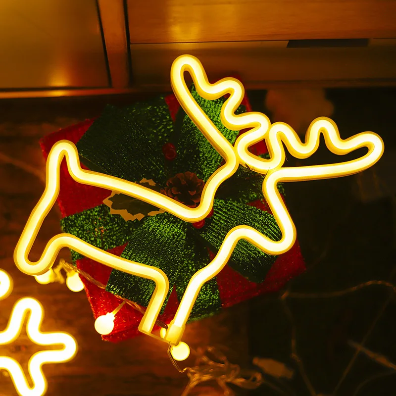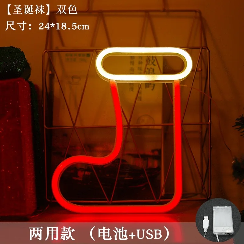 Светодиодные рождественские носки, неоновая вывеска, светильник, цветной настенный светильник, s, шляпа, колокольчики, Рождественская елка, снежинка, лось, украшения, декор для комнаты Вечерние