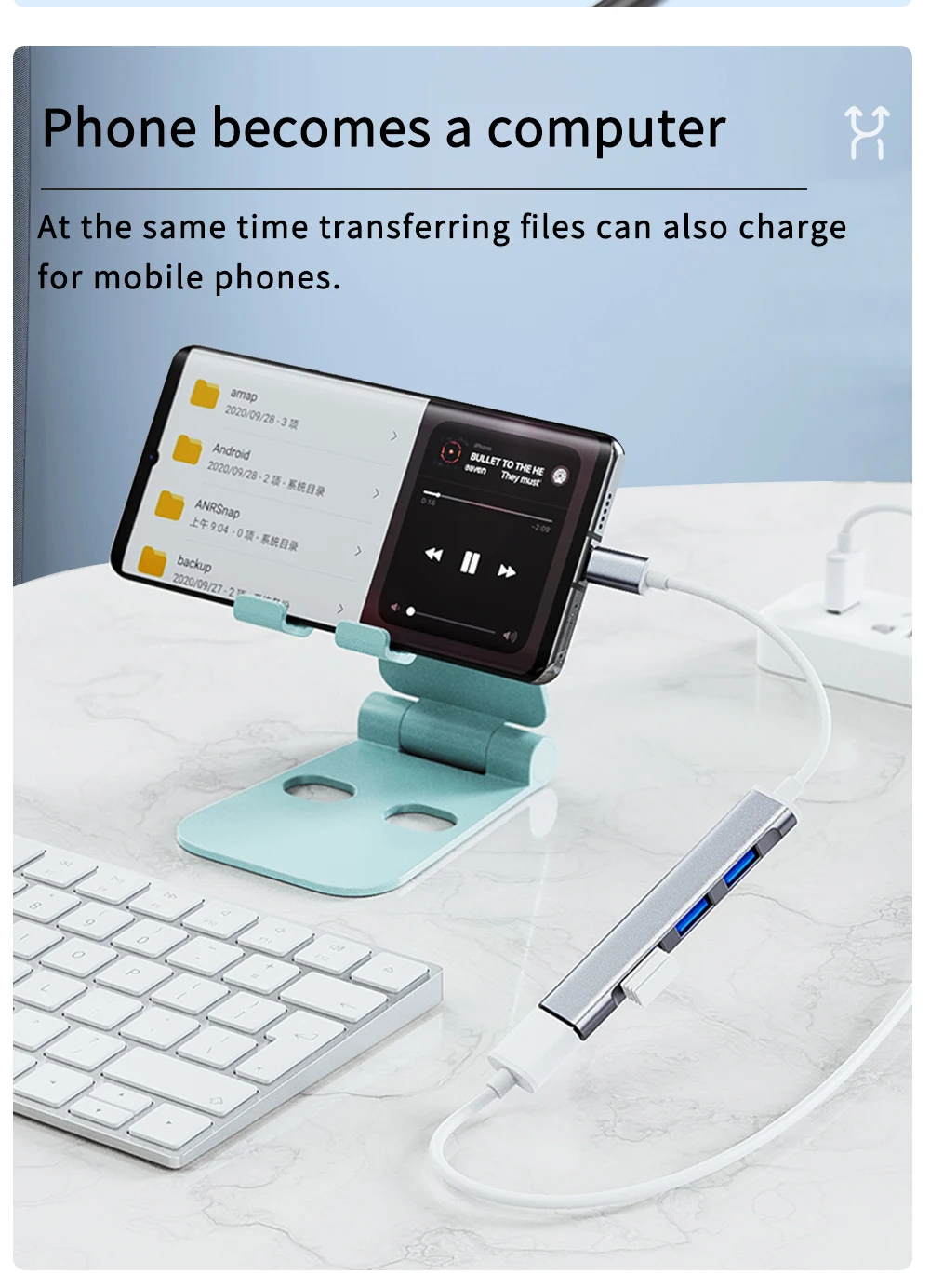 USB-концентратор с портом USB Type-C, 3,0 дюйма, 3,1 дюйма, 4 порта