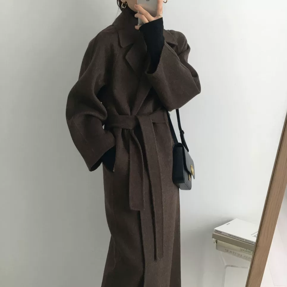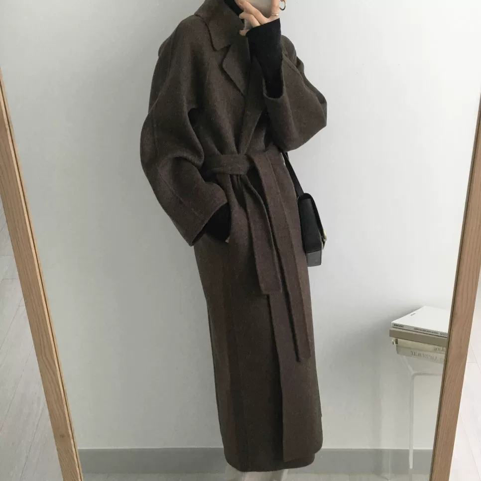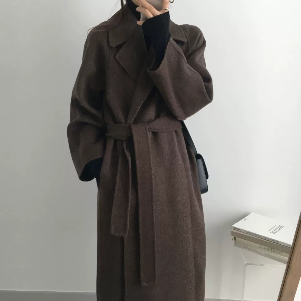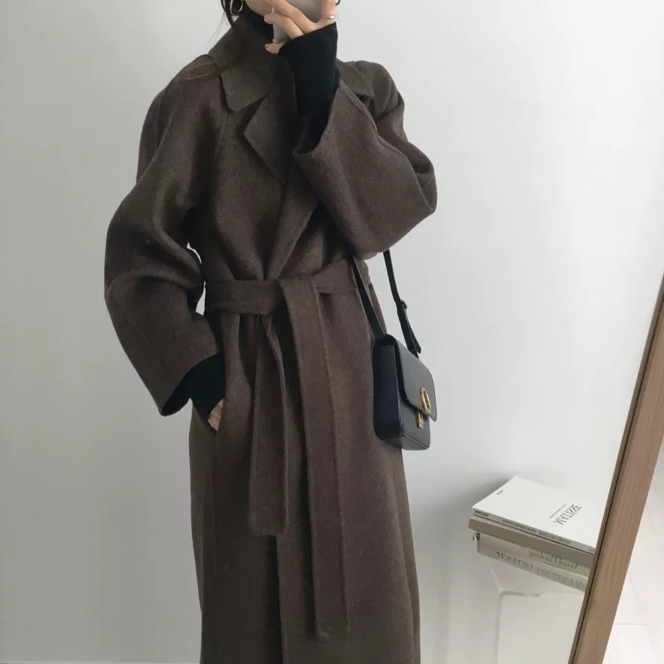 Женское длинное шерстяное пальто с поясом, модная верхняя одежда, у...