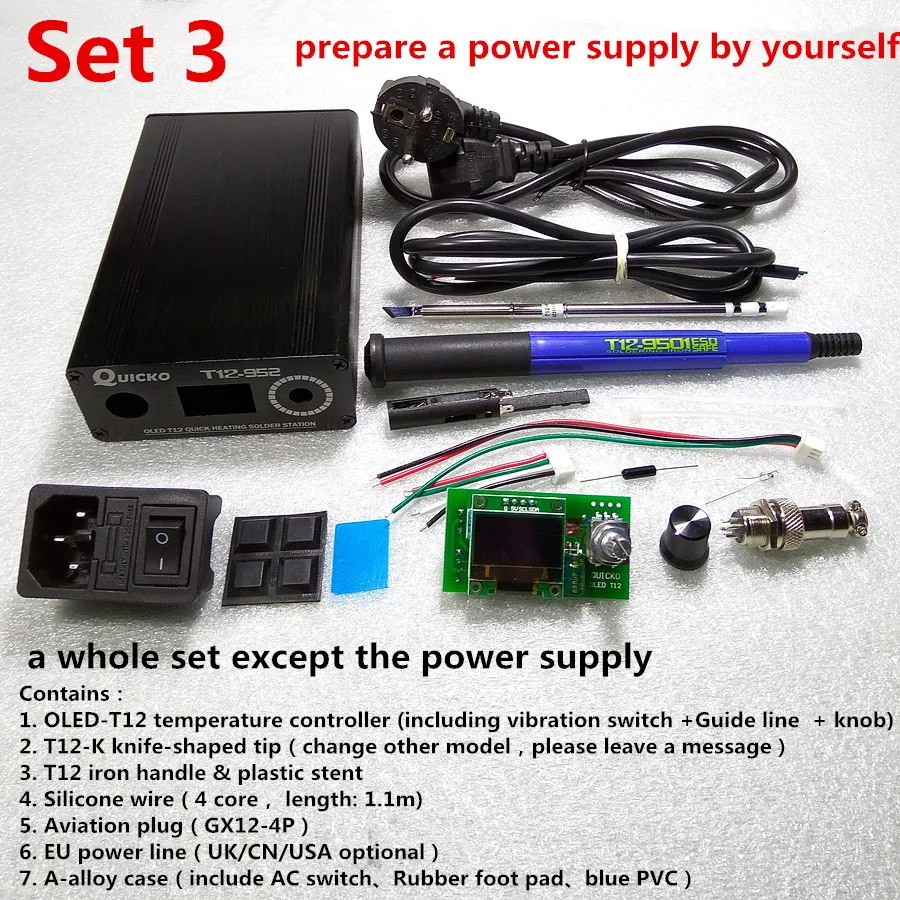 This product is QUICKO T12 iron DIY Kit, not HAKKO, you need to prepare a power supply and assemble the parts together by yourself. if you are not good at DIY, or if you know little about Electricity, please do not buy this kits. We do not assume any responsibility for man-made damages. Thank you for your understanding.please make sure the positive and negative anodes connection were all right before testing. Wriong connection was bound to a red-iron situation. if it\'s happened,please check PCB stent and aviation plug carefully,please conpared your connection with the datail steps in my store and try to interchange the positive and negative wire,the machine will be OK. Any other problem,you may ask for help and send us your DIY photos,we will pleasure to provide guidance.